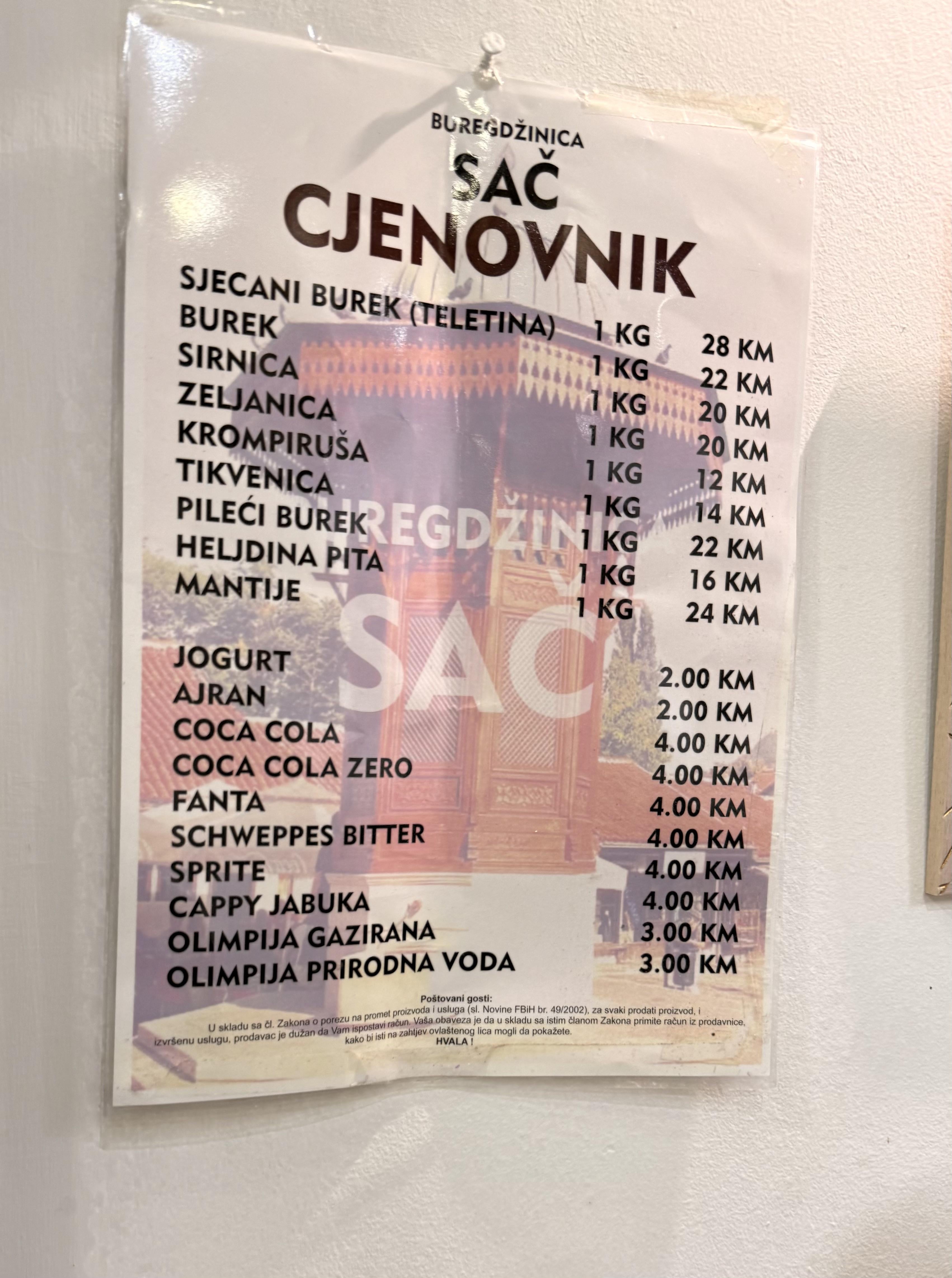 Ma sta 20ak godina, kila sirnice je prije samo 4 godine bila 8KM u buregdzinici MM naprimjer i ostalim u mom komsiluku, a npr. u Bosni na Carsiji je bila 10KM, burek 12KM… Znam jer sam u to vrijeme s muzem koji nije bosanac isla i testirali smo pite po gradu, imam i slika menija… najela sam se tad pita ko nikad hahaha