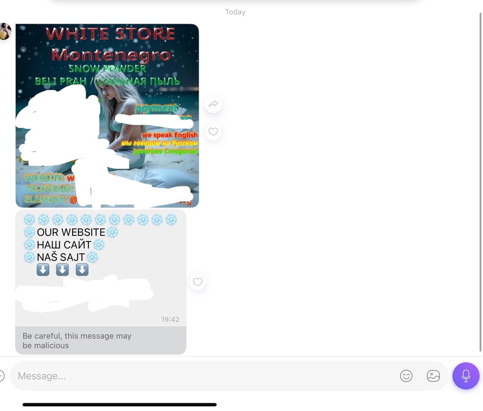 Menschen aus Podgorica und ich und meine Haushalte sind aus der russischen Nummer mit dem Verkauf von „Weißpulver“ angekommen: Hat jemand die gleiche Botschaft erhalten und was damit zu tun ist