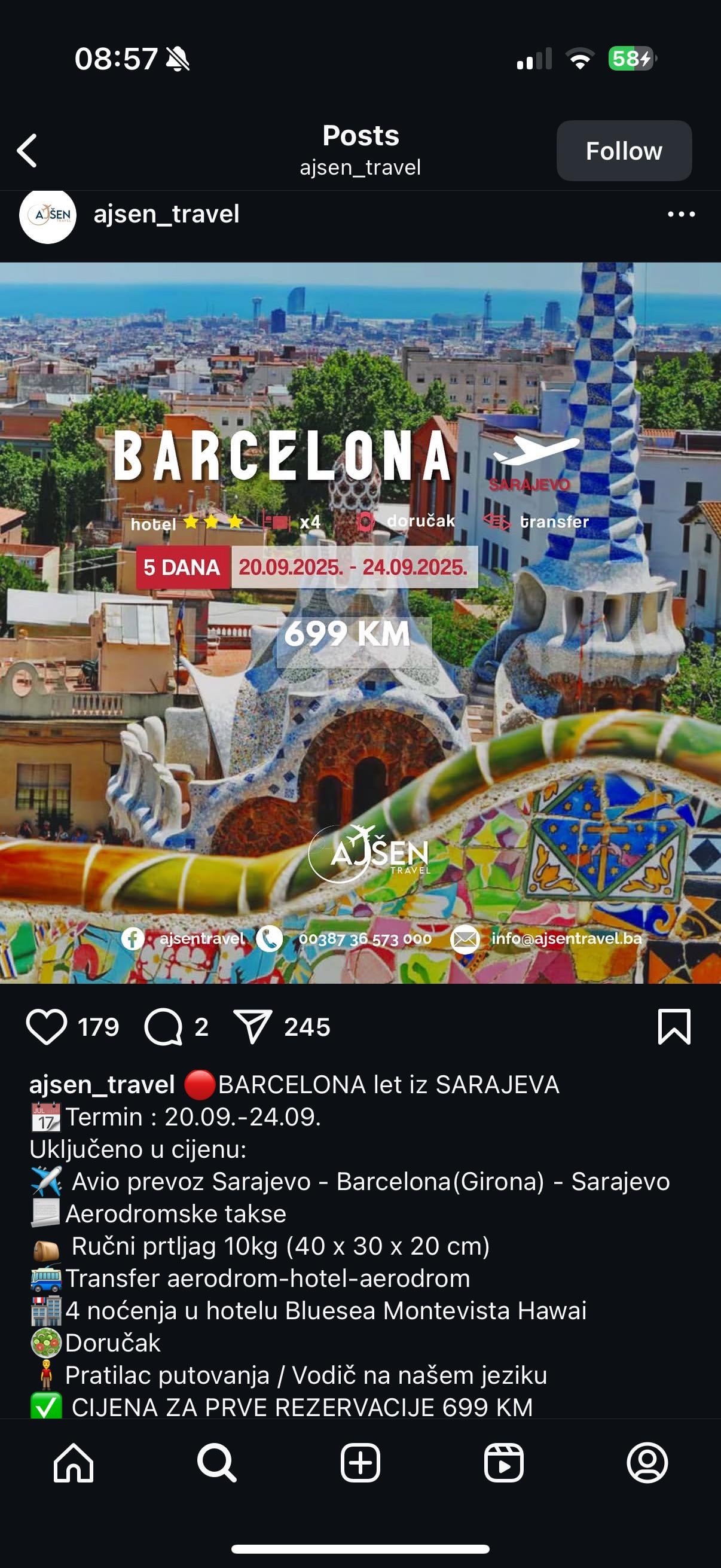 Titel Themen. Ich suche einen Kumpel, um zu reisen. Also die Person einer Frau. Ich bin ein Mädchen, 27 Jahre von Sarajevo. Es ist eine Reise in Barcelona im September, das Angebot ist auf dem beigefügten Bild. Wir können auch eine Vereinbarung ohne eine Agentur arrangieren, möglicherweise für eine andere Stadt / einen anderen Staat. Ich bin offen für alles. Da ich erst seit September war, ist es nur seit September, aus diesem Monat zu organisieren. Es kann in einem Kommentar oder in einer Nachricht auftreten, damit wir uns auf Kaffee befinden.