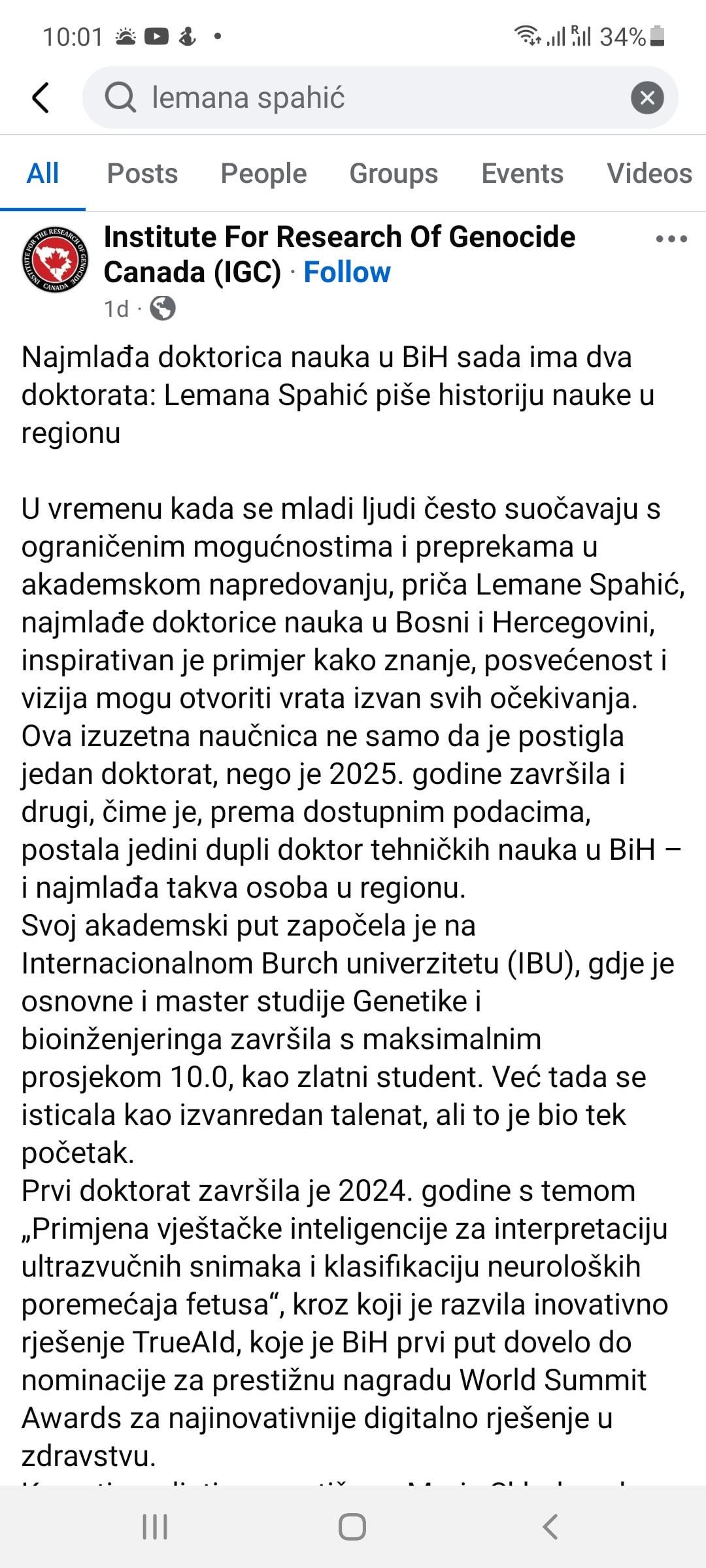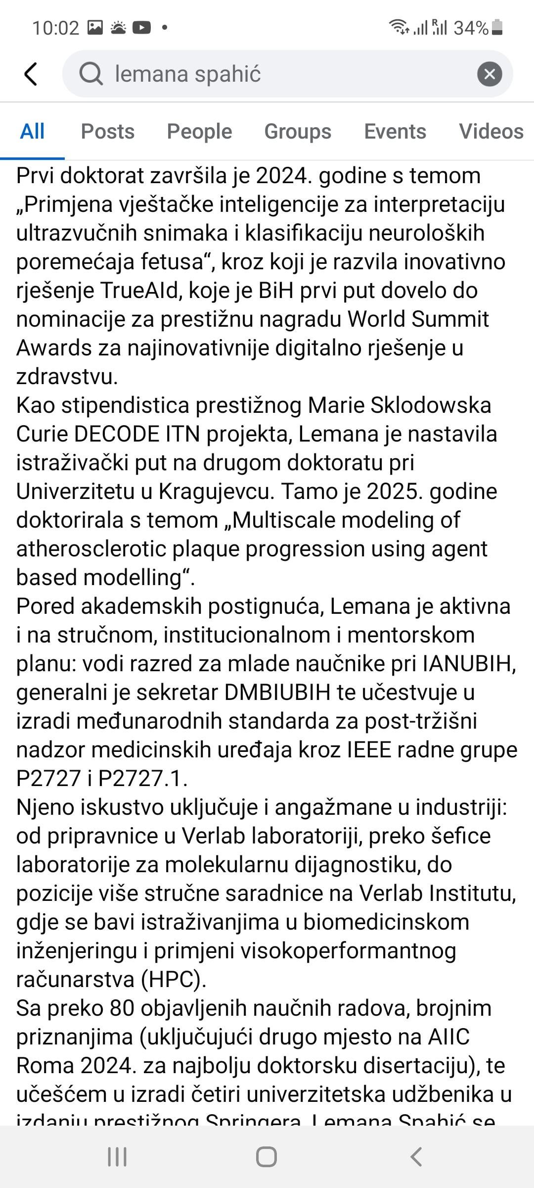 Djevojka ima 80 naučnih radova sa dva doktorata, toliko nemaju ni neki univerzitetski profesori u zvanju redovnog profesora, još ima učešće u izradi 4 akademska udžbenika, svaka joj čast.