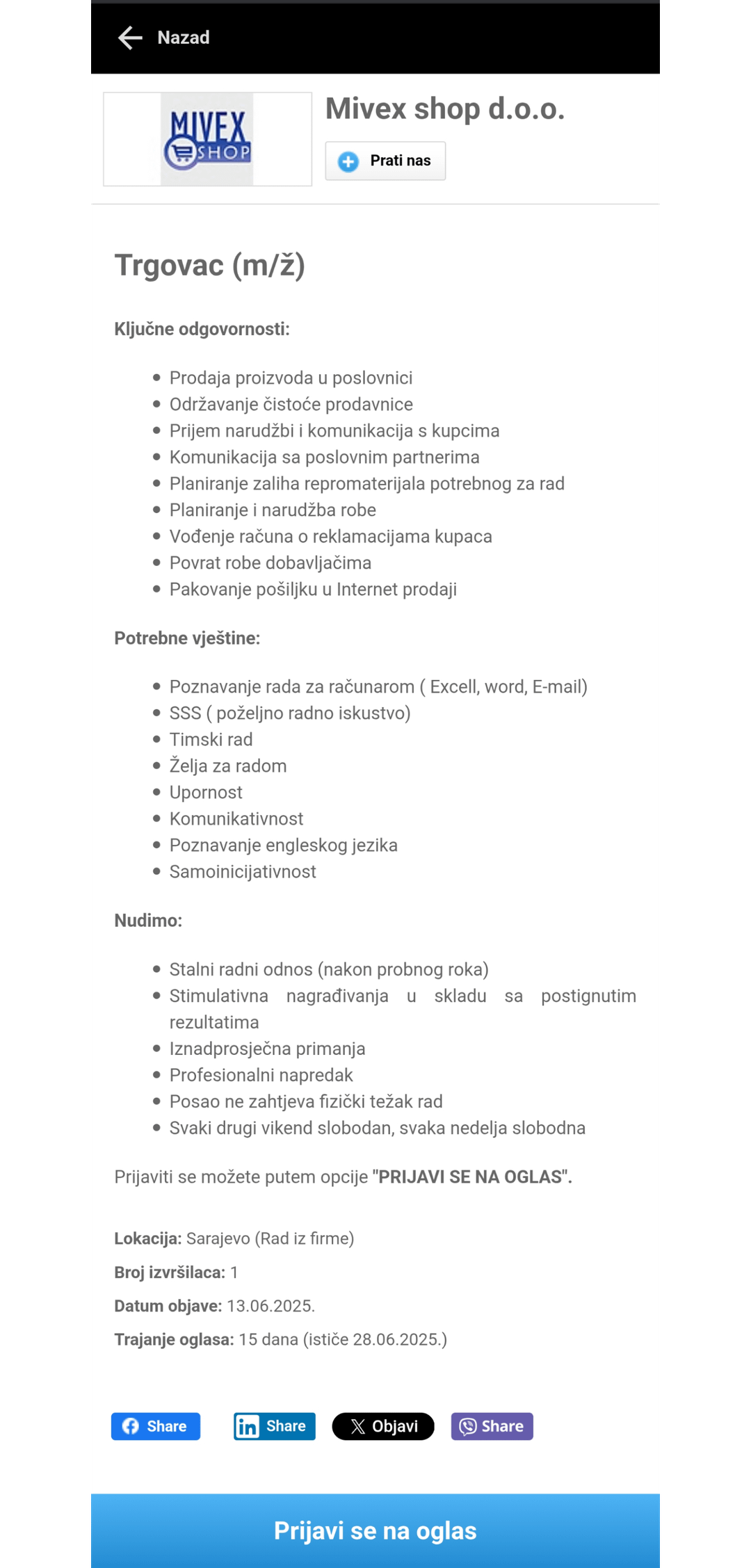 Ich habe schon eine Weile darüber nachgedacht, das aktuelle Unternehmen zu verlassen, weil ich erschöpft bin. Der Job als Job ist großartig. Es ist physisch nicht mühsam, während Psychic von Zeit zu Zeit ist. Arbeitszeiten sind verzweifelt. Von 06:00 bis 00:00 in zwei Schichten. Die erste von 6 bis 15 Uhr und die zweite von 15 Uhr bis 00H. Fragen Sie mich nicht, wie es sich anfühlt, die zweite Schicht zu beenden, und am nächsten Tag als erster … er wird solide bezahlt und ich bin sehr zufrieden mit dem Einkommen. Aber nach vollen zwei Jahren, die ich in der Firma verbracht habe, kann ich einfach nicht mehr. Ich schlafe schlecht, esse schlecht und habe keine Zeit, mich mir selbst zu widmen, geschweige denn andere Verpflichtungen im Leben. Das erste Jahr war großartig und ich konnte mich nicht beschweren, während es im zweiten Jahr für mich immer schwieriger wurde. Ich habe das Gefühl, dass ich bin "Gebet" und dass ich mich auch nach dem Urlaub genauso fühlen werde. Ich sah mir ein paar Jobanzeigen an und die beiden haben mein Auge im Auge gerichtet. Alle Informationen sind willkommen, Arbeitszeiten, freie Tage, Schichten, Einkommen und Beziehung im Unternehmen … Ich interessiere mich für alles.