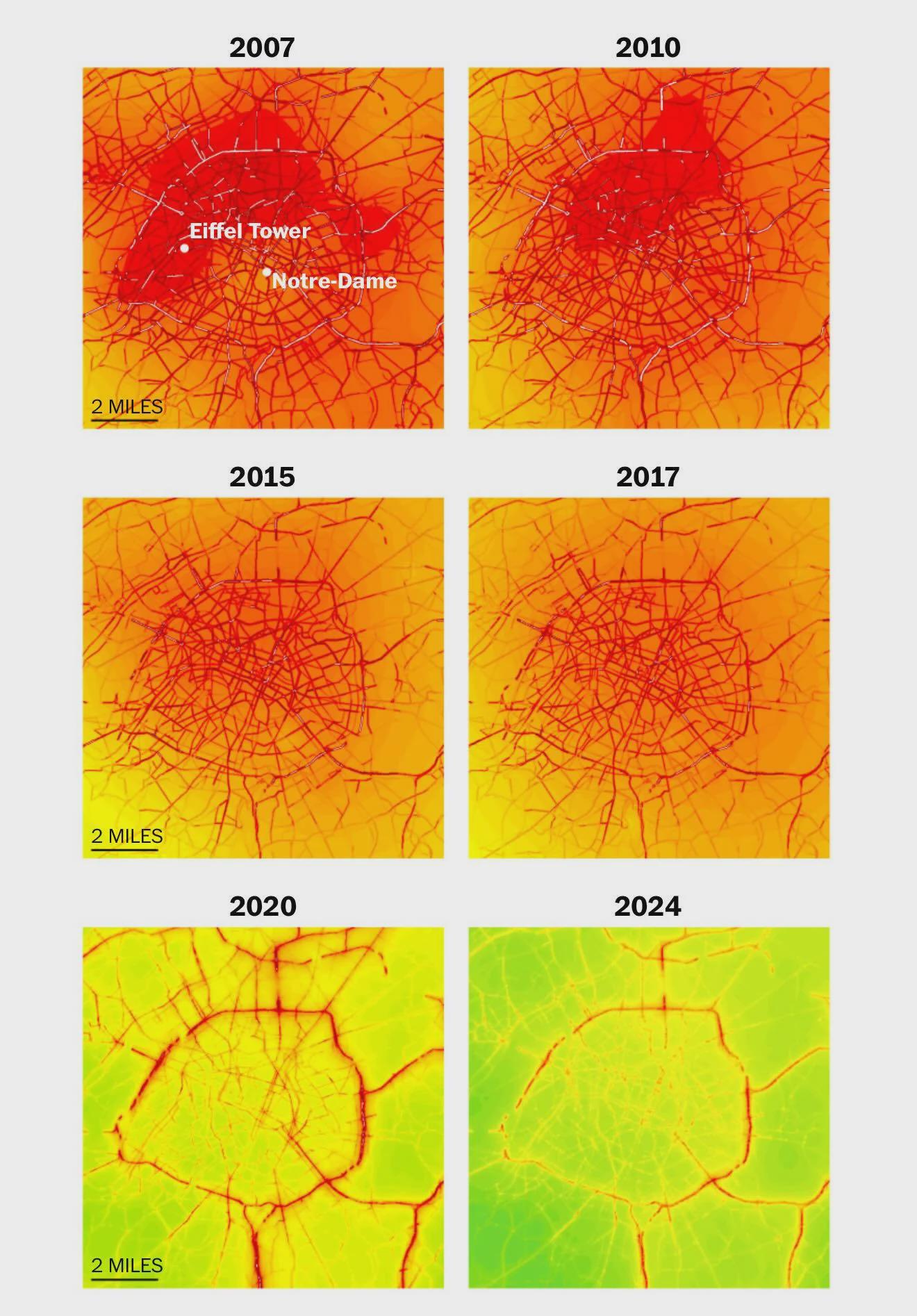 Jako je neodgovorno komentirati sliku bez konkretnih brojki, mada iskreno vjerujem da su veci utjecaj imali Euro 6 motori i razlicita godisnja doba kada je koja slika uzeta nego broj bicikala u gradu