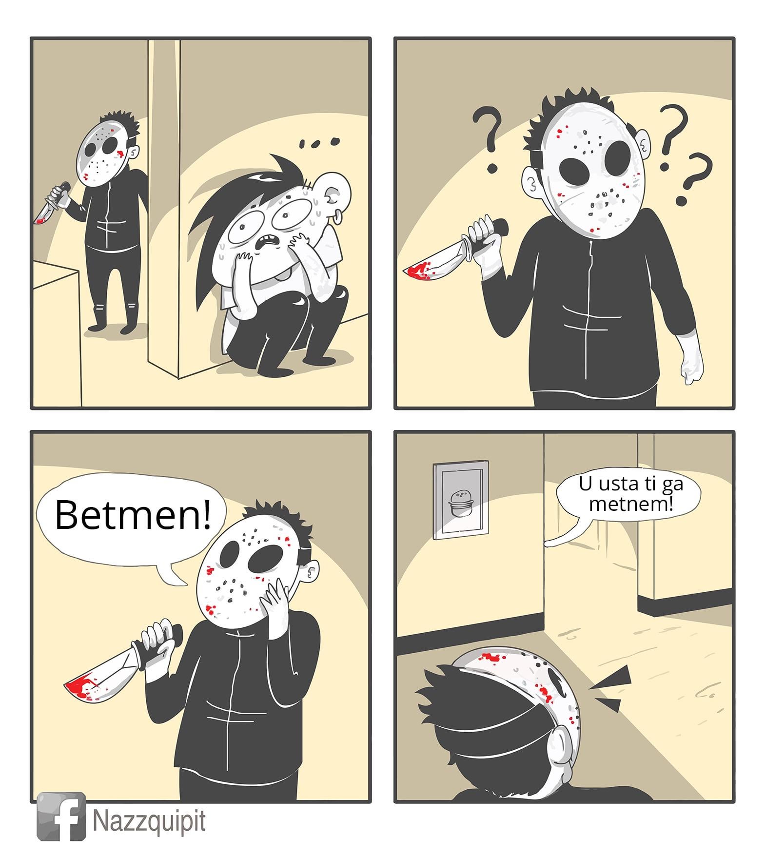 RageBash on 03.07.2025 11:45 a.m. Kako se na engleskom kaže baterija? Battery -Ućeram ti m*teri. —- Kako se zove onaj predmet kojim ušivaš? Igla -Ciganka te digla. —- Hvala. Molim. ‐Ućeram ti golim. Hahahaha nek si me podsjetio, nisam o ovome mislio ima bar 15 godina. Tonu sam ih zaboravio….
