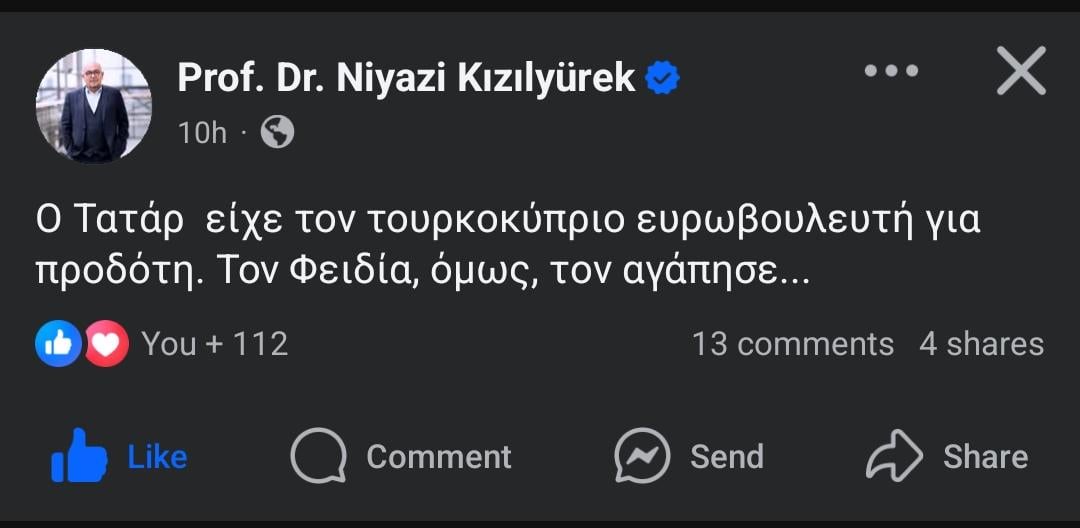 Übersetzung: Tatar hatte den türkisch -zypriotischen Mdep für einen Verräter. Aber Phidias, er liebte ihn …