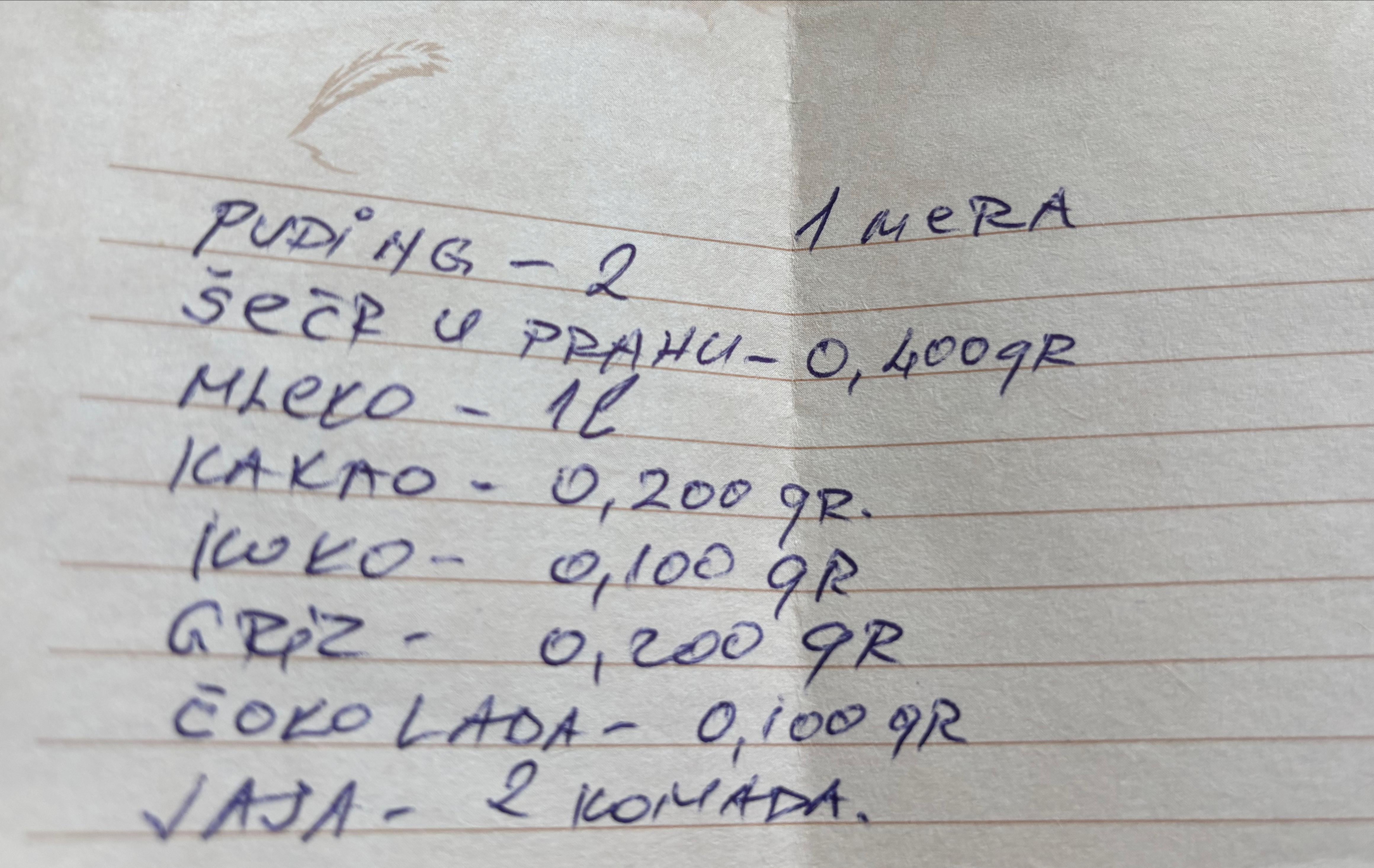Ich ging vor ein paar Jahren nach Montenegro und mochte sehr ein Dessert, das an einem der Orte gemacht wurde, an denen ich wohnte. Ich habe das Rezept bekommen, aber ich verstehe einige der Zutaten, die ich brauche, nicht. Könnte jemand es bitte für mich übersetzen? Ich wäre wirklich dankbar !!