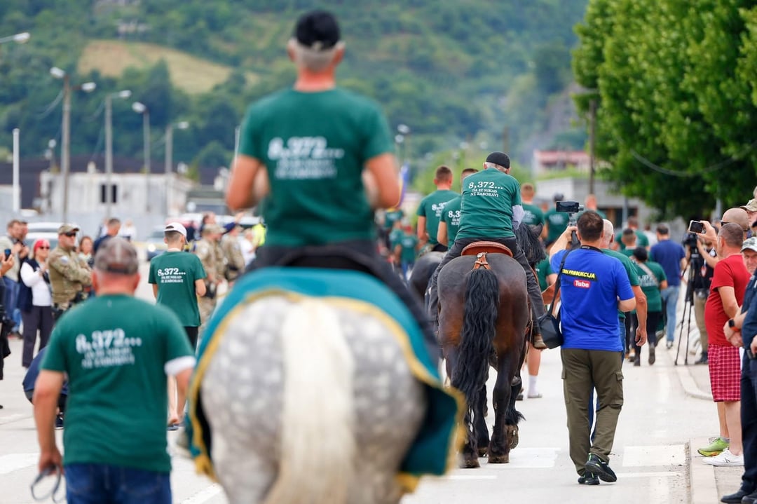 Reiter kamen an, 20 mehr in traditionellen bosnischen Kosten. Sie kamen, um den Opfern des Völkermords Tribut zu zollen … In der nächsten Stunde wird die Ankunft und die Teilnehmerin des Mira -Marsches erwartet, in dem es fast siebentausend Menschen gab, die aus Nezuk herausgegangen sind …