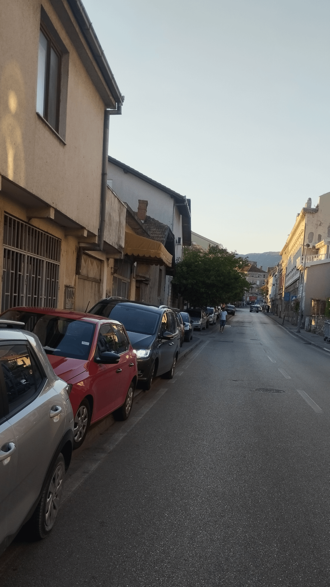 Idem danas pjeske od Baščaršije do Markala, i sad ono usko usko usko, nemoš se mimoići i gdje god nije ograđeno za pješake neki majmun se parkira pa moraš sić i cestom. Taman da me satre tramvaj ko Anu Karenjinu kod Hadžića