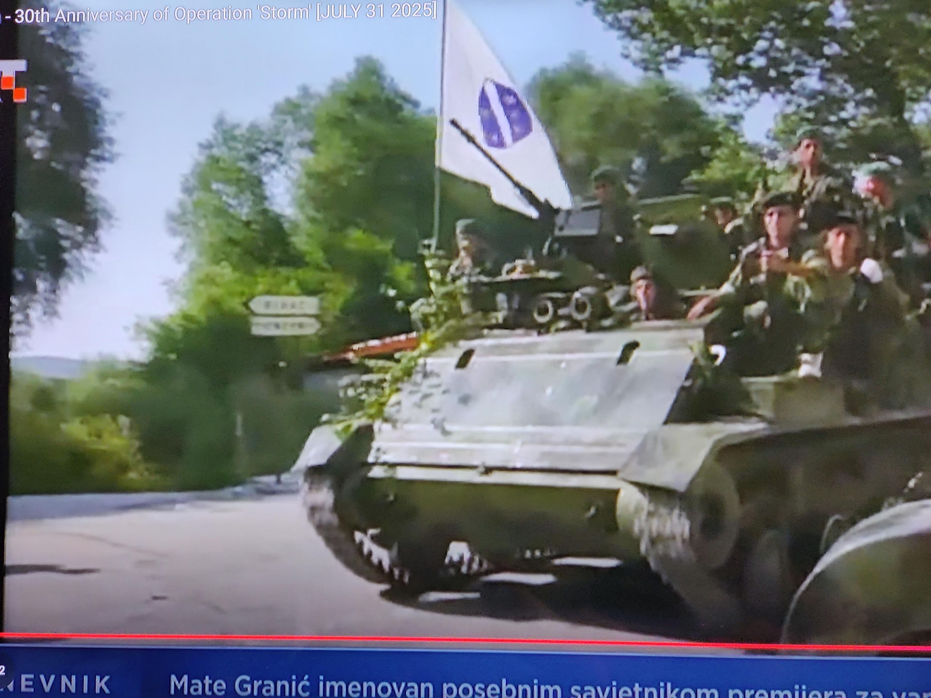 Hallo zusammen! Auf einer YouTube -Seite eine Aufnahme der Parade, die die Nachbarn gestern hatten. Es gibt auch einen Sneaker -Schüsse des Operation Storm im Video, bevor das Ende der Aufnahme erscheint, in der das gepanzerte Fahrzeug mit der Flagge der Republik Kroatien und unmittelbar hinter ihm dieses gepanzerte Fahrzeug mit Flaggen mit Lilien hinter sich hat?! Weiß jemand, ob dies ein Filmmaterial des fünften Corpus ist, nicht in der Lage, jemanden aus dem Redaktionsbüro zu bemerken, aber nicht einzugeben.