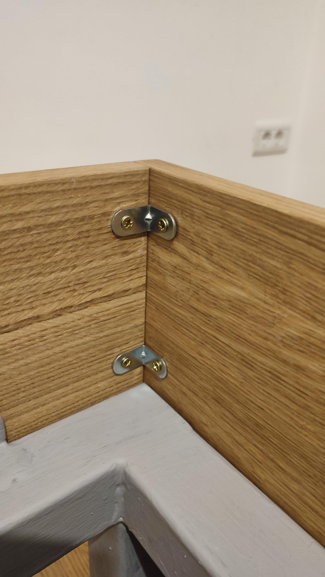 Die Seiten werden von Mediapan von Decor IVA verblüfft. Wir sind mit Eichenfurnier zufrieden, aber der Mülleimer ist sehr schlecht gemacht. Es ist sehr schwach geklebt, also mussten wir hübsch viele Orte geben. Außerdem sollten alle Ecken etwas verschüttet sein, da sie nur gerade enden können, sodass die ćoškovi punkten können. Wir haben Tik-Öl in die Anpassung für diese Teller genommen. Die perfekte Beschichtung für dieses Furnier.