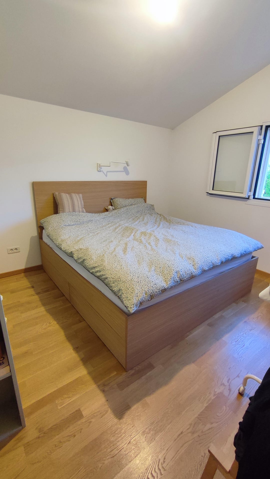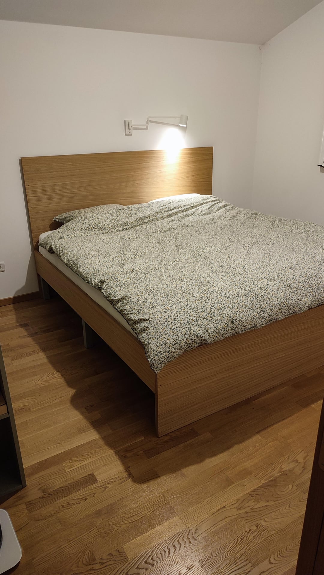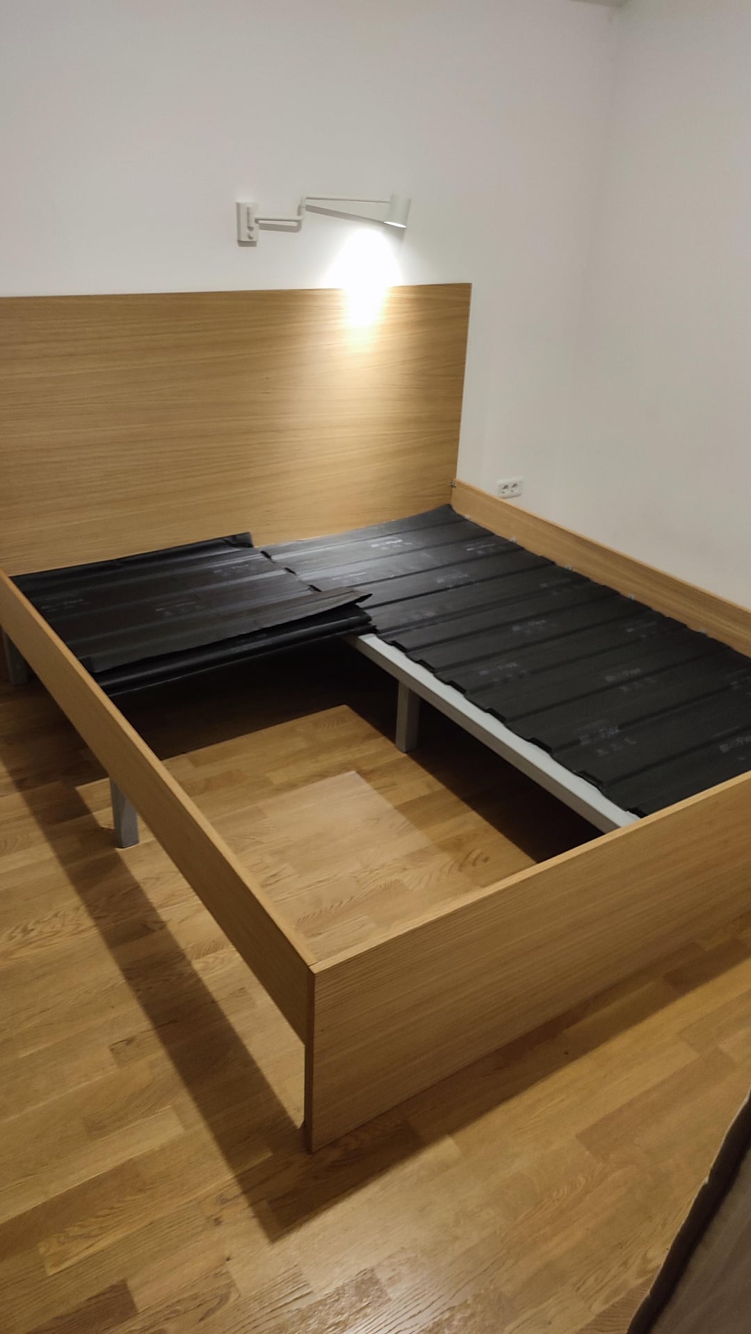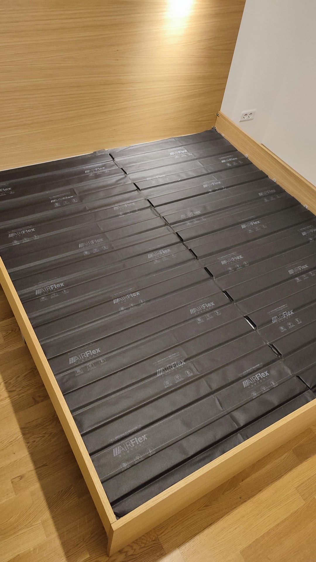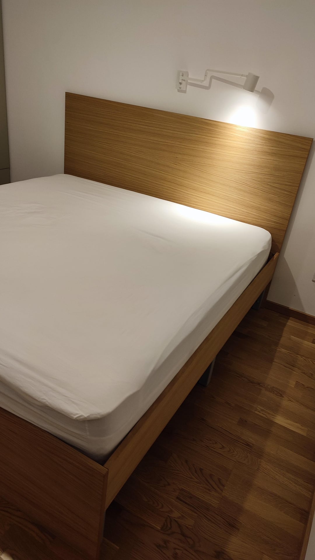 Wir verließen das Bett 204x184cm, 2 cm auf jeder Seite der Matratze. Es stellte sich heraus, dass es großartig war, aber in der Länge hätten wir 200 cm frei verlassen können, da sich diese Matratze nicht erstreckte.