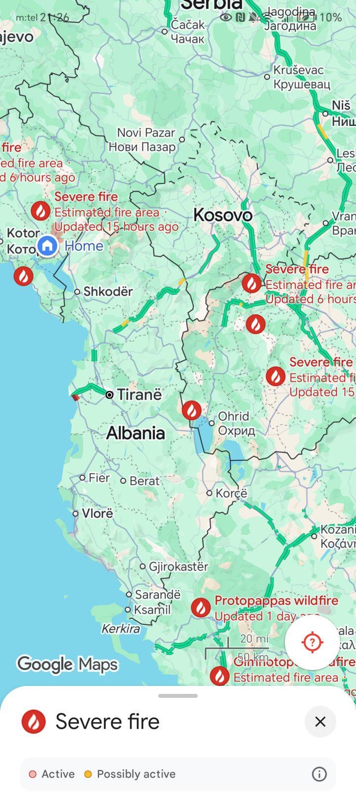 То су само пријављени пожари. Албанија их вјероватно не пријављује Гуглу, а имају их и они, и то велике. Видио сам снимке туриста одатле.