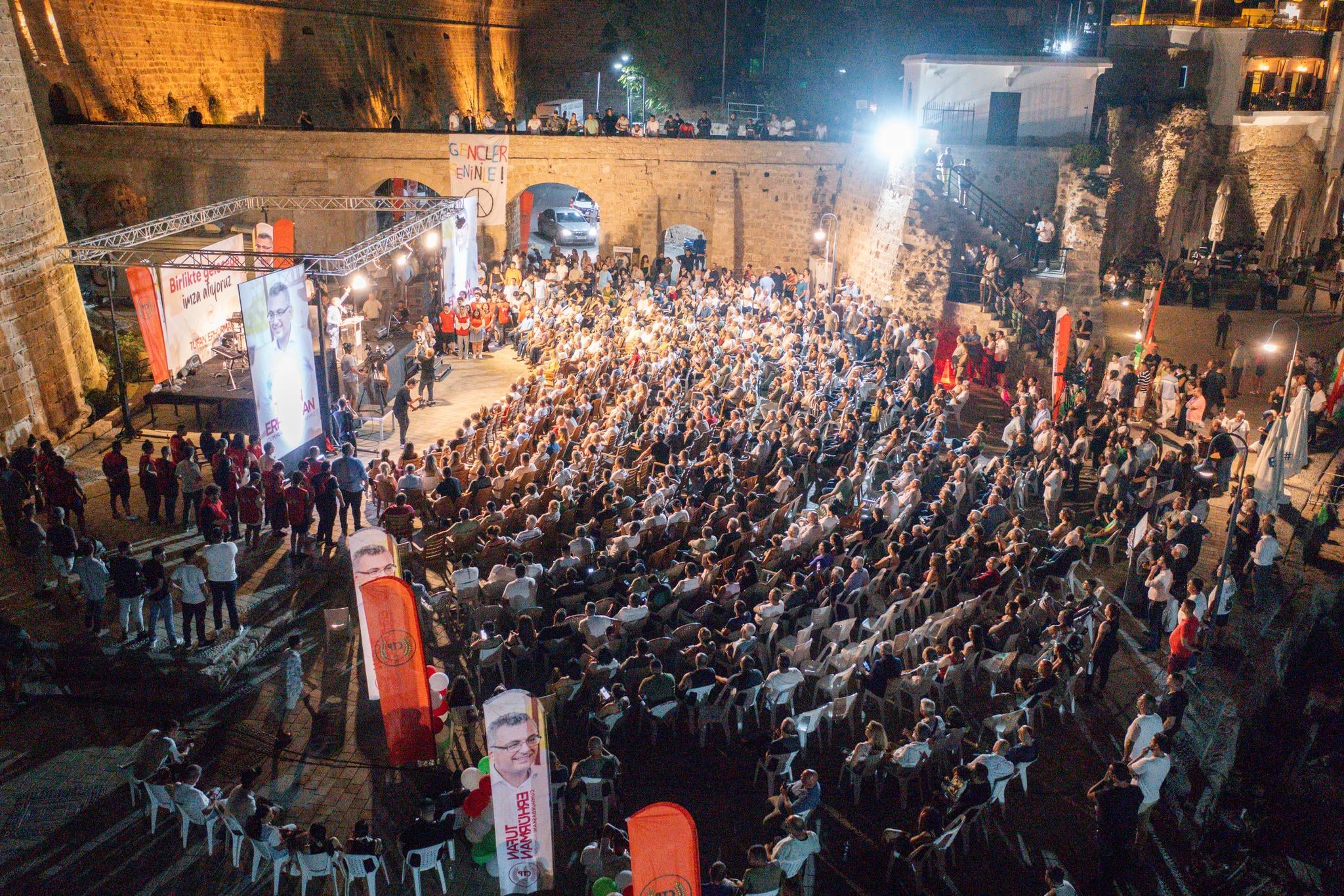 Rund tausend Menschen stiegen in den Hafen von Kyrenia ab, um an der Kundgebung teilzunehmen. Erhurman begann seine Rede mit der Aussage, dass „Kyrenia heute Abend noch schöner ist“.