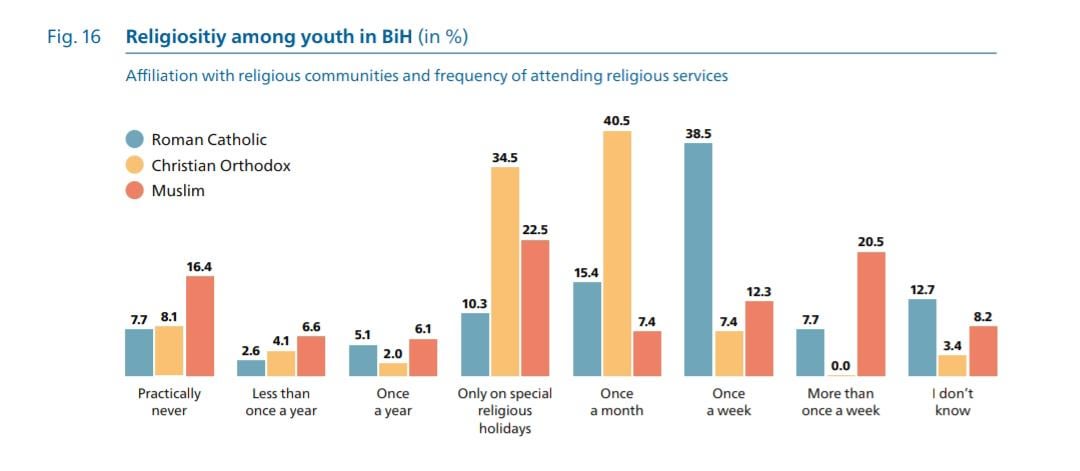 Religiöse Anwesenheit unter jungen Menschen aus verschiedenen Religionen in Bosnien und Herzegowina (2024 Jugendumfrage)