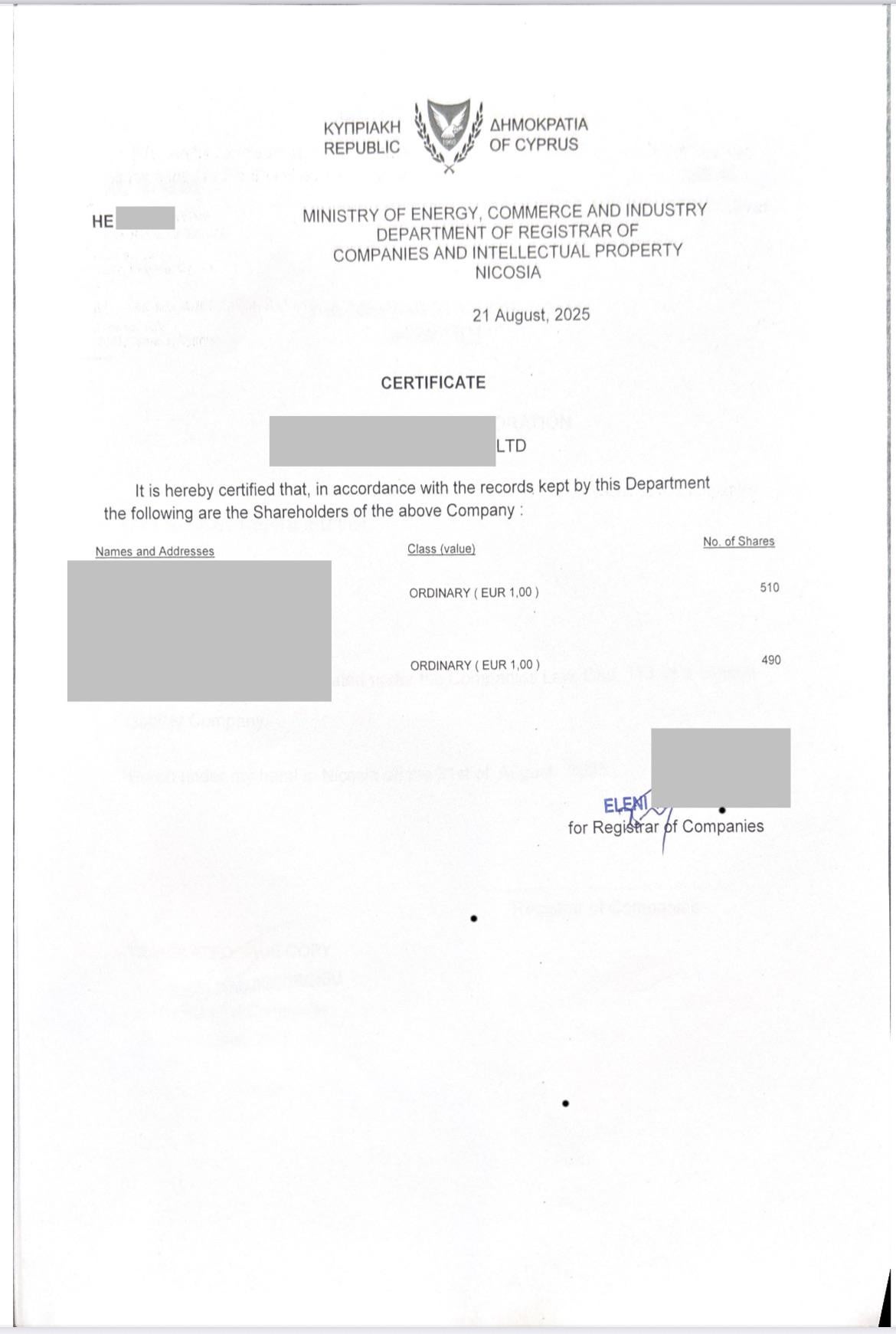 Ich versuche, ein Revolut -Geschäftskonto für mein Unternehmen zu eröffnen. Ich habe das Zertifikat der Aktionäre eingereicht, sie haben es jedoch abgelehnt und erklärt, es enthält keine Registrierung oder Dokumentnummer. Mein Anwalt bestätigte jedoch, dass dies das einzige verfügbare offizielle Aktionäre -Dokument ist. Hat jemand es geschafft, ein Geschäftskonto mit einem ähnlichen Dokument zu eröffnen? Wenn ja, haben Sie zusätzliche unterstützende Dokumente eingereicht?