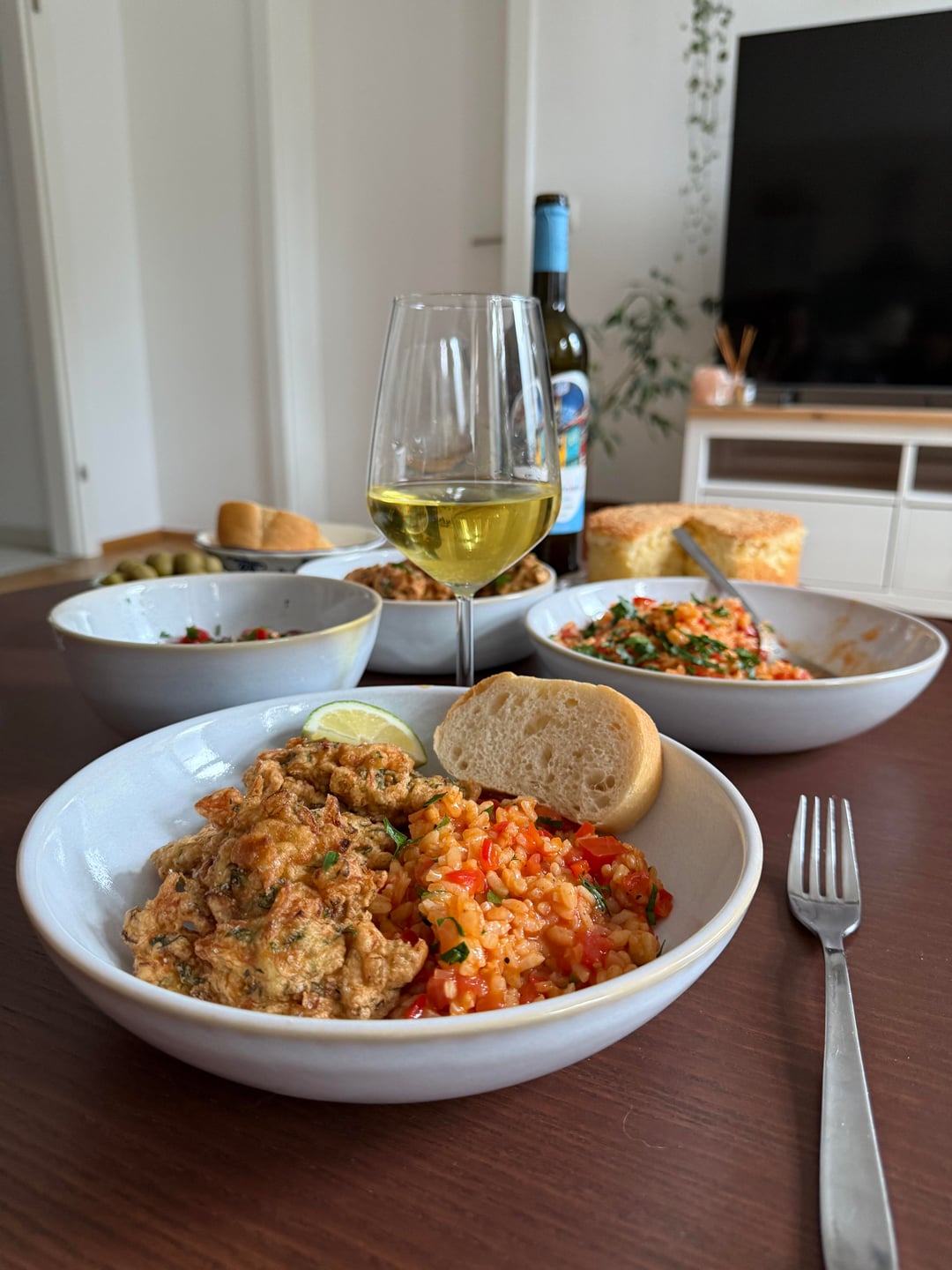 Dazu Oliven Brot und Vinho Verde