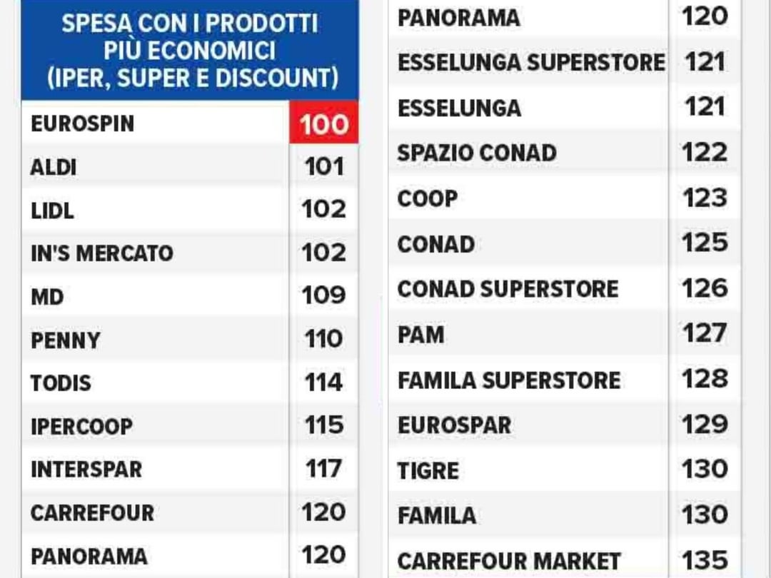Es gibt nur zwei Karten der vollständigen Untersuchung, die Sie hier finden: Die billigsten Supermärkte Italiens laut Alroconsumo, hier sparen Sie bis zu 4.000 Euro pro Jahr: Die Rangliste | Corriere.it