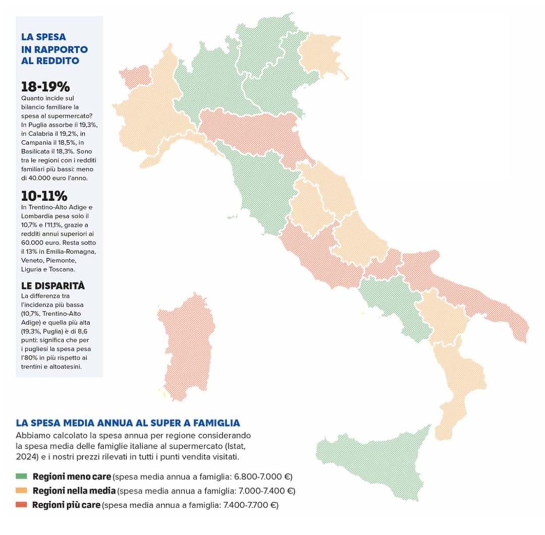 Col tempo il costo della spesa al supermercato si è uniformato sulla penisola. Chiaramente rimangono delle differenze, peraltro nette, tra metropoli come Milano e città come Lecce. Ma i prezzi sono aumentati ovunque negli ultimi anni. I redditi saranno anche più bassi al sud, ma da siciliano ovviamente posso confermare che le entrate non dichiarate provenienti dall’economia sommersa, i cosiddetti lavori in nero, livellano un po‘ la situazione.