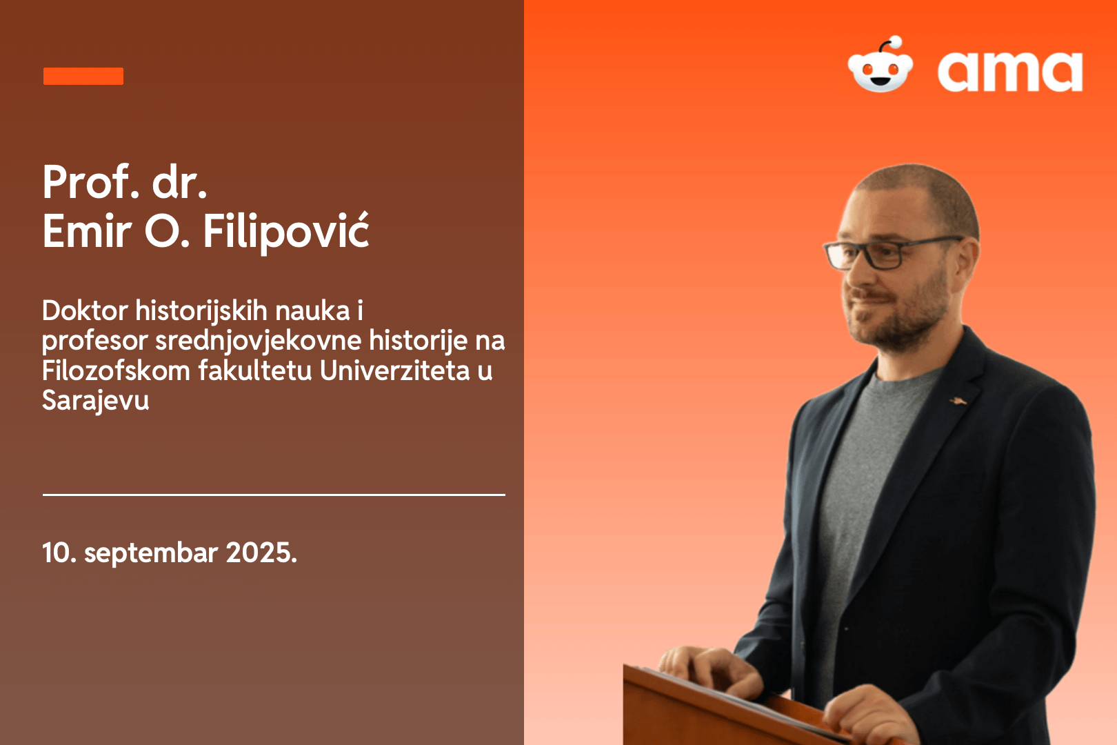 Wir werden in der nächsten Woche einen eigenen zweiten haben, in dem unser zweiter Gast Emir O. Filipović sein wird – Dr. Historical Sciences und Professor der Fakultät für Philosophie, Universität von Sarajevo. Ich habe diesen Besuch zuvor inoffiziell angekündigt, und jetzt kündige ich und offiziell bekannt. Ich hoffe, dass die Zeit der inoffiziellen Ankündigung dazu diente, das Grundwissen unserer Geschichte zu erwerben oder wiederherzustellen und Ihre Fragen vorzubereiten.
