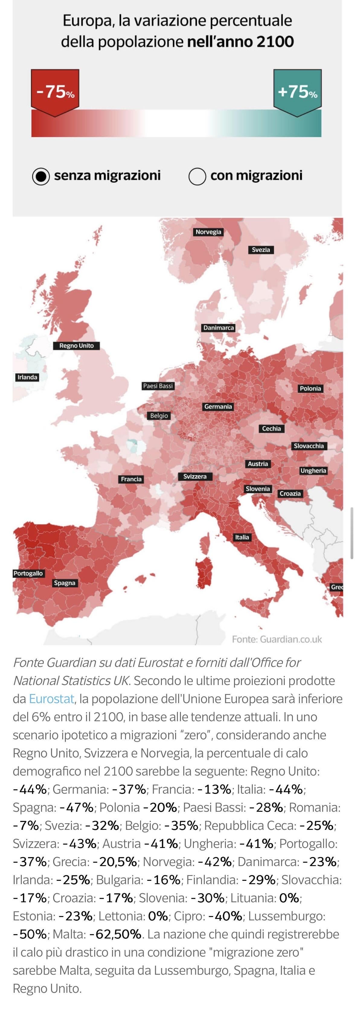 Der vollständige Artikel mit der anderen Karte ist hier: Europa ohne Einwanderer wird ein Drittel der Einwohner im Jahr 2100 verlieren: Was tun? Interaktive Karten und Szenarien | Corriere.it