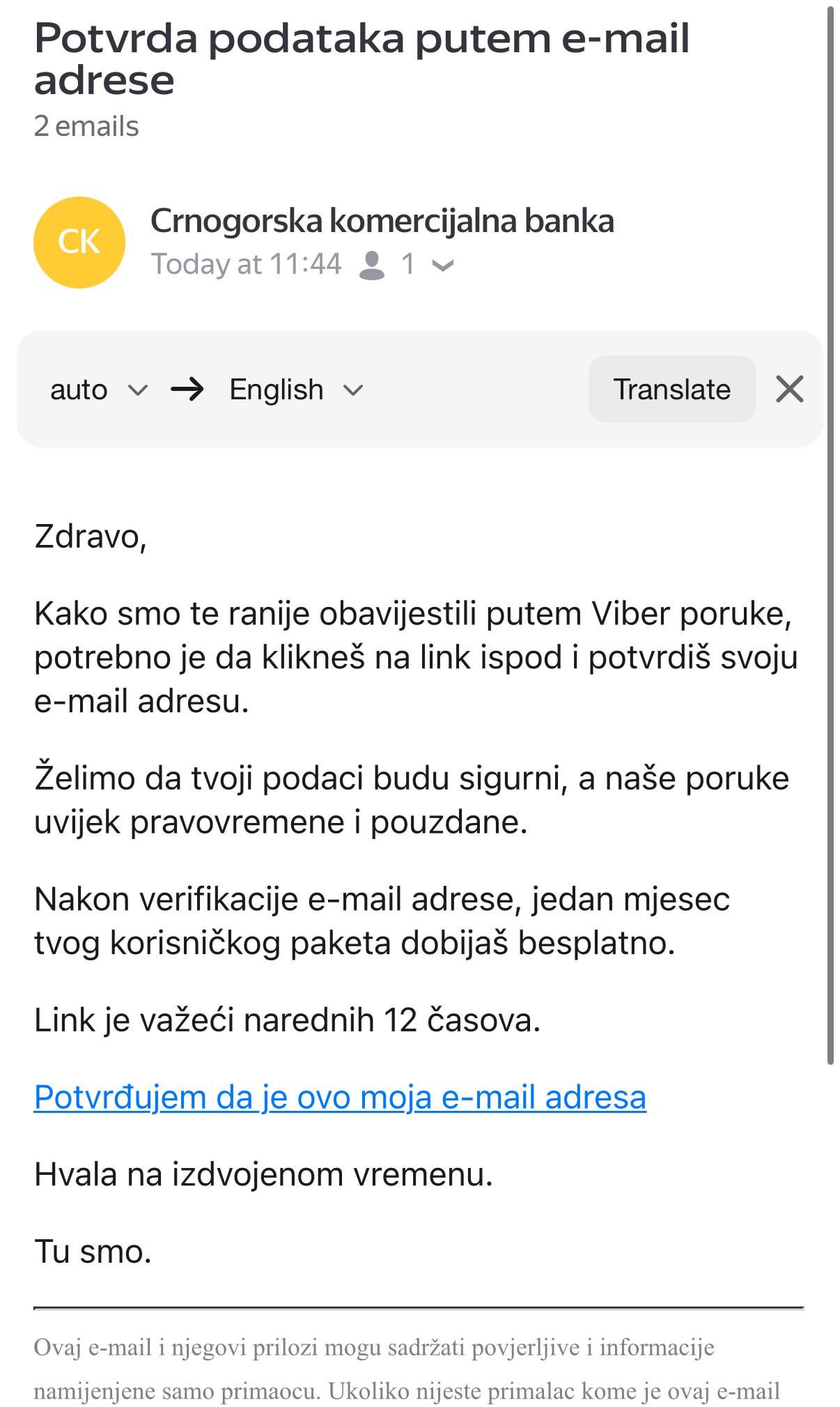 To sam i ja dobio ali ja sa bankom radim sve piješke. Ništa preko mailova, prošetam do ispostave i provijeravam.