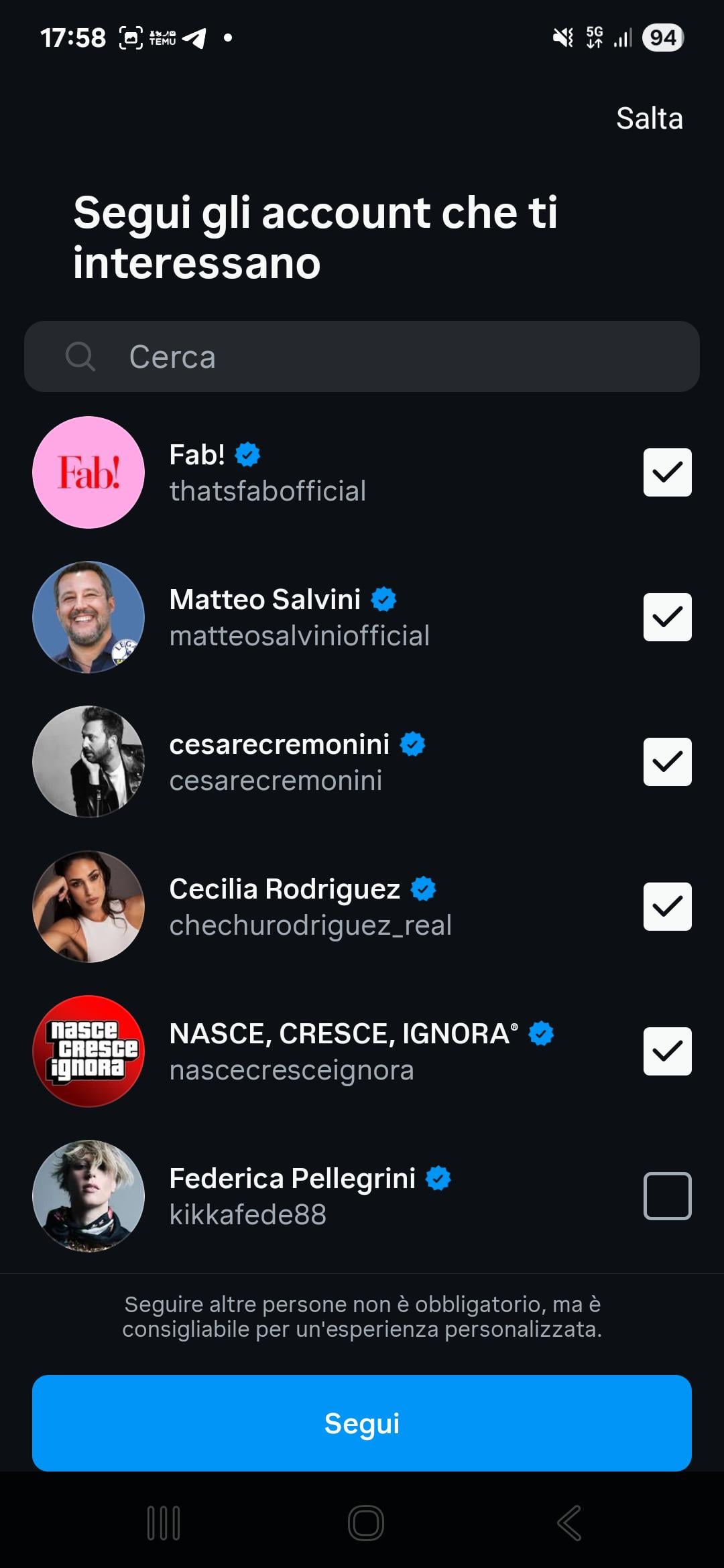 5. Ipotesi neutra: il nuovo account è geolocalizzato e vengono suggeriti i profili più seguiti dagli utenti di quell’area geografica.