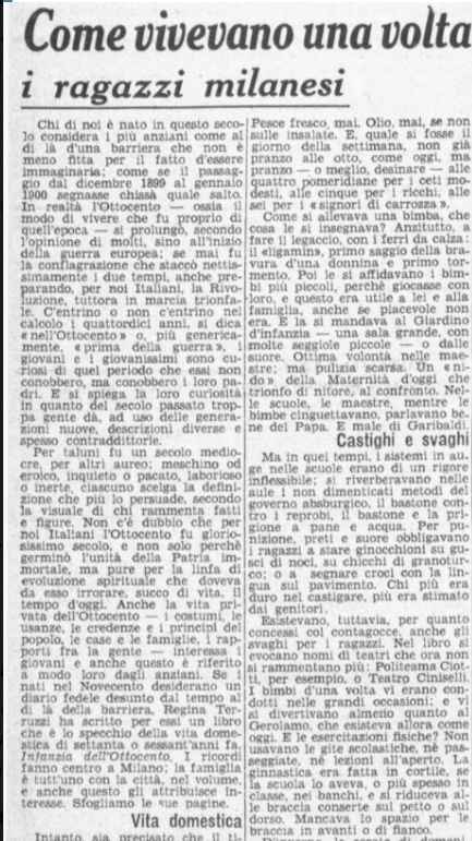 Ich las einen alten Zeitungsartikel (Corriere della sera, 27. September 1938), der das tägliche Leben der Milanischen Jungen am Ende des 19. Jahrhunderts erzählte, und es fiel mir auf, wie „natürlich“ es war, sparsam zu leben: