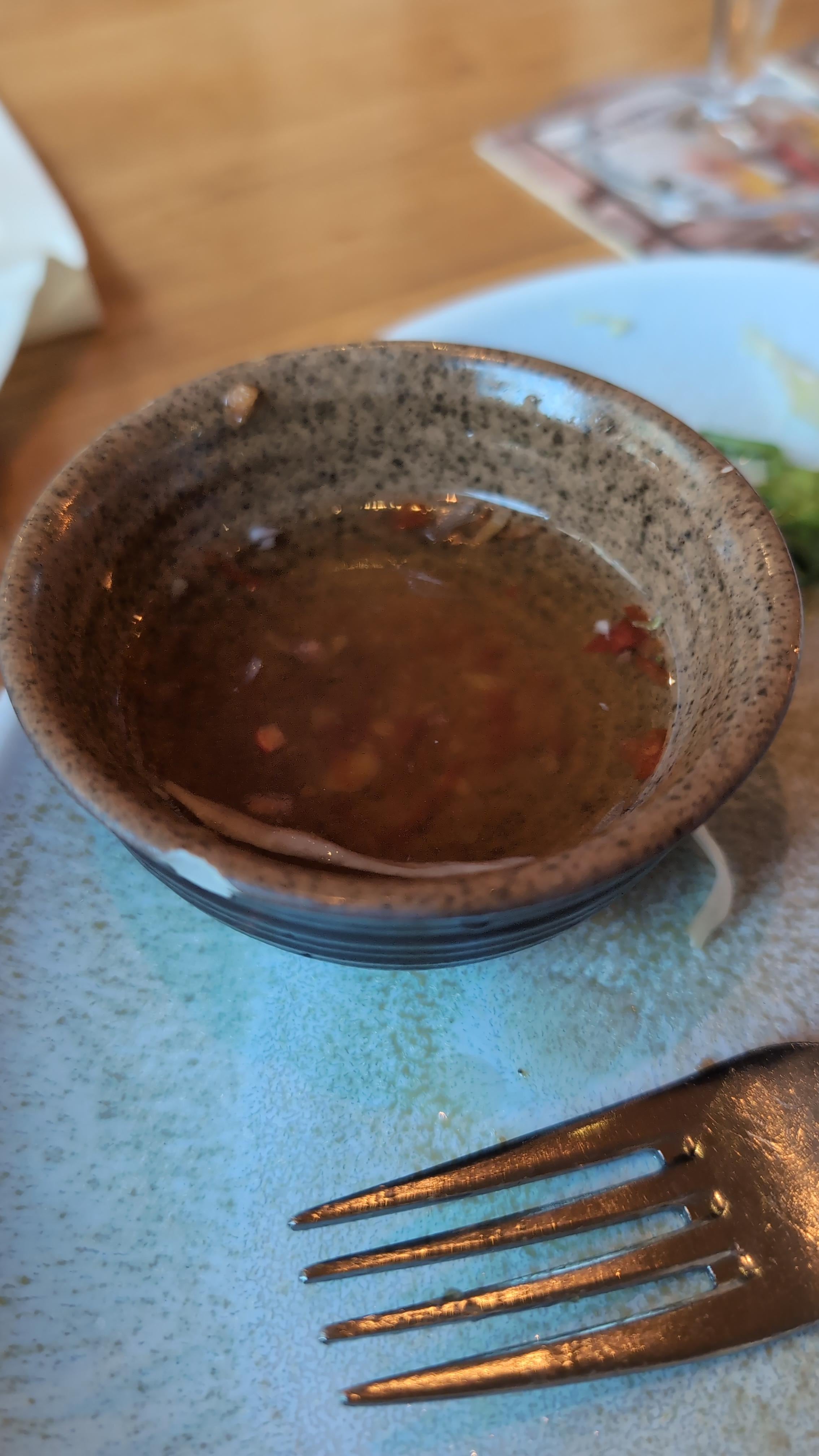 1. Das sieht nach der Fischsauce vom Vietnamesen aus, in die man seine Sommerrolle tunkt.