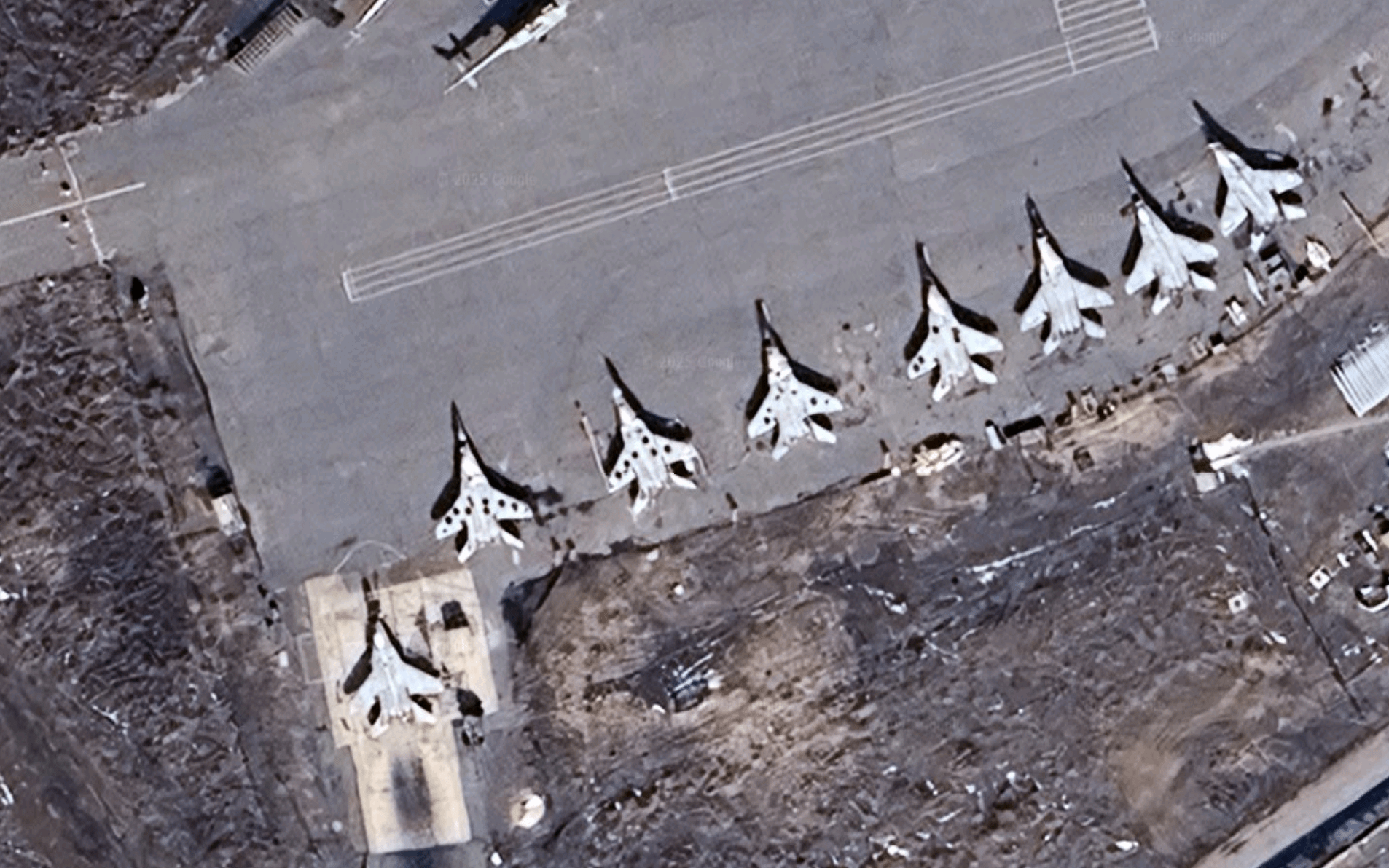 Hier ist ein Screenshot von Google Maps über Erebuni Airbase (die Karte scheint dieses Jahr aktualisiert worden zu sein). Die schwarzen Punkte, die die 4 MIG-29 im Mittellinks bedecken, sind höchstwahrscheinlich Autorreifen, was interessant ist, da bekannt ist, dass die russischen VKs strategische Flugzeuge wie Bomber abdecken, die in Luftbasis innerhalb der Ukraine stationiert sind. Analysten nehmen an Es ist ein kostengünstiger Versuch, die ukrainische Targeting-KI zu verwirren (was katastrophale Konsequenzen nicht verhinderte).