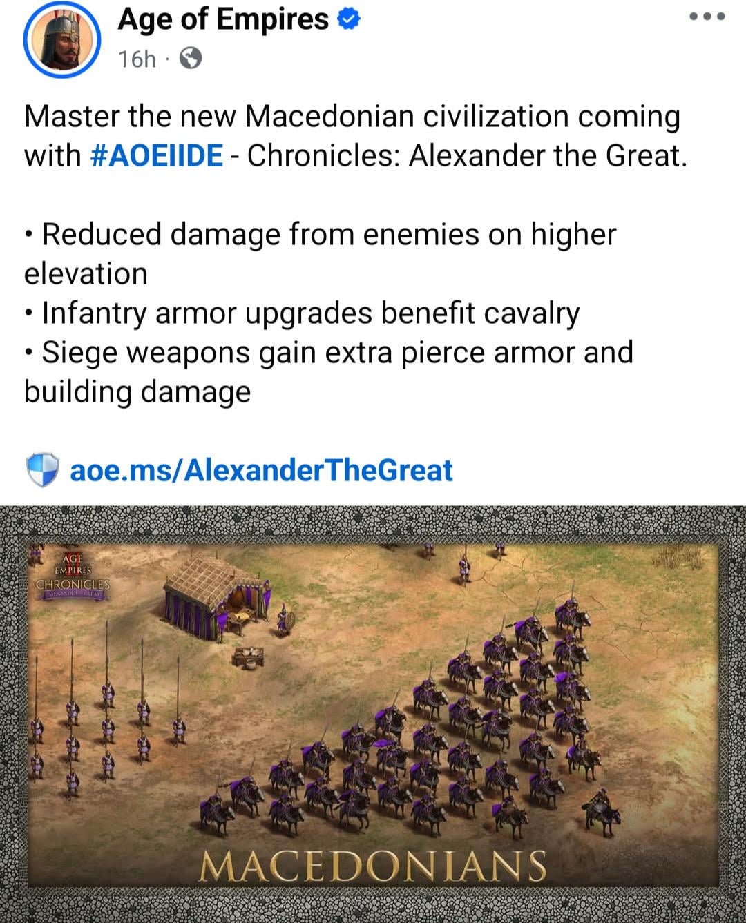 Има старо интервју со Age of Empires 1 OG девелопер, збори за како уште тогаш во 90тите некои грци му лаеле за зошто има и грци и македонци како посебен цив во Age 1, вика дека како и дае не треба да му цивкаат зошто чим македонците биле грци еве ви 2 грчки цивилизации наместо 1 ахахха а тогаш ги сметале како не-грци со барбарски јазик а денес Алекс бил само нивни, не можам да го најдам конкретното одамна беше но беше интервју со Sandy Peterson за Age 1 development, едно од многу, како и дае ќе го купам ова како и сите Age 2 DLCs, одлична игра со над 200+ саати од мисии, освен ако нема кампања….