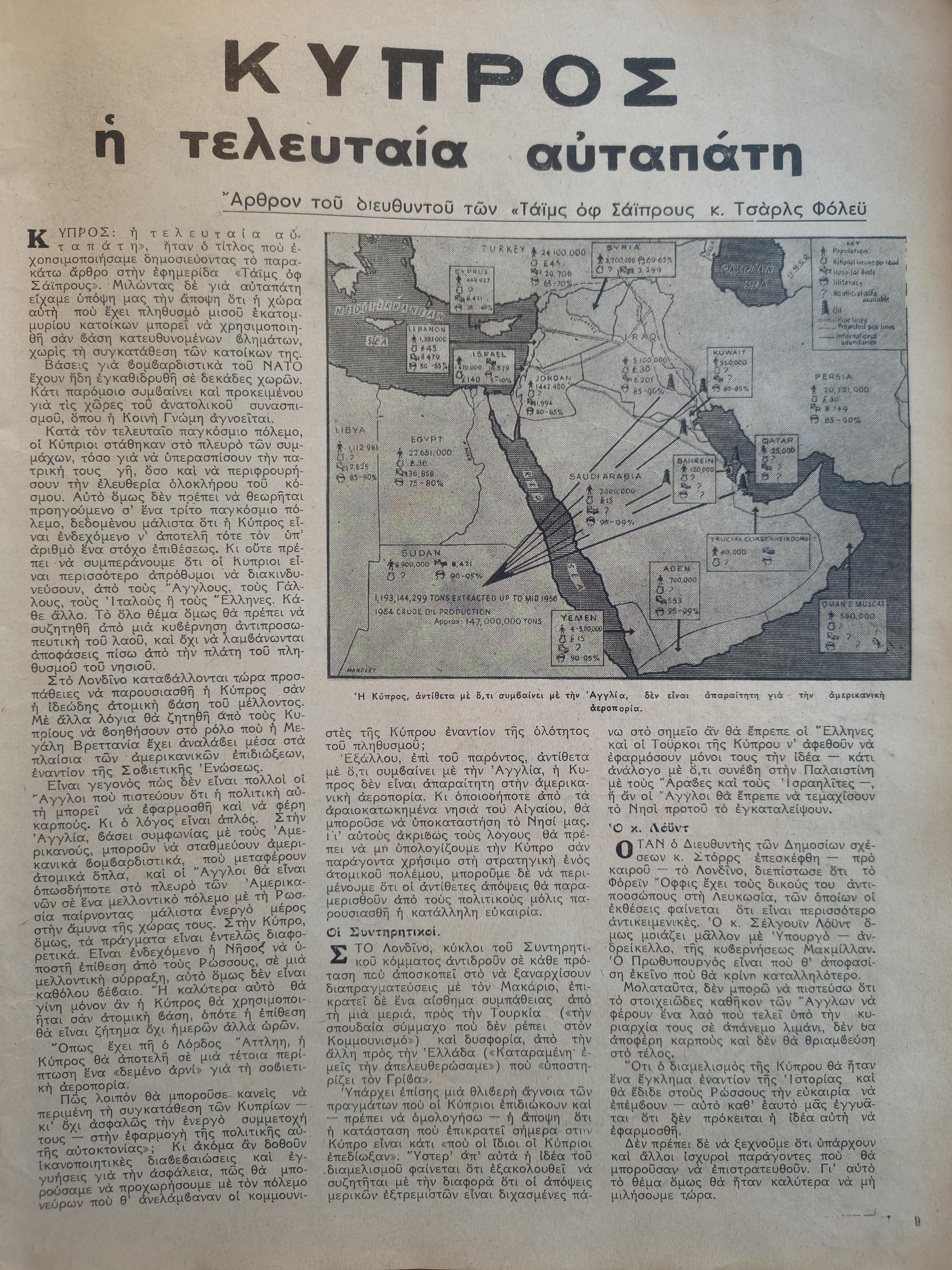 „Zypern, die letzte Illusion“, Zeiten von Zypern, 30/9/1957, übersetzt in Kommentaren übersetzt