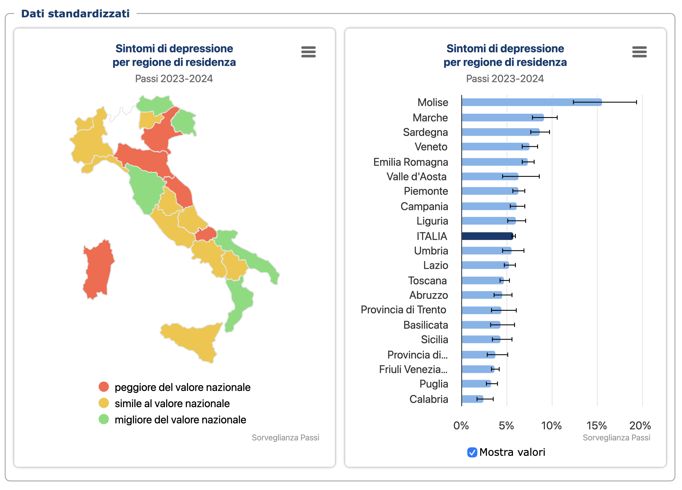 Der Passi-Bericht des Istituto Superiore di Sanità wurde gerade veröffentlicht. Wenn Sie die Daten auch nach Alter, Bildung, Geschlecht usw. einsehen möchten: Depression – Schritte