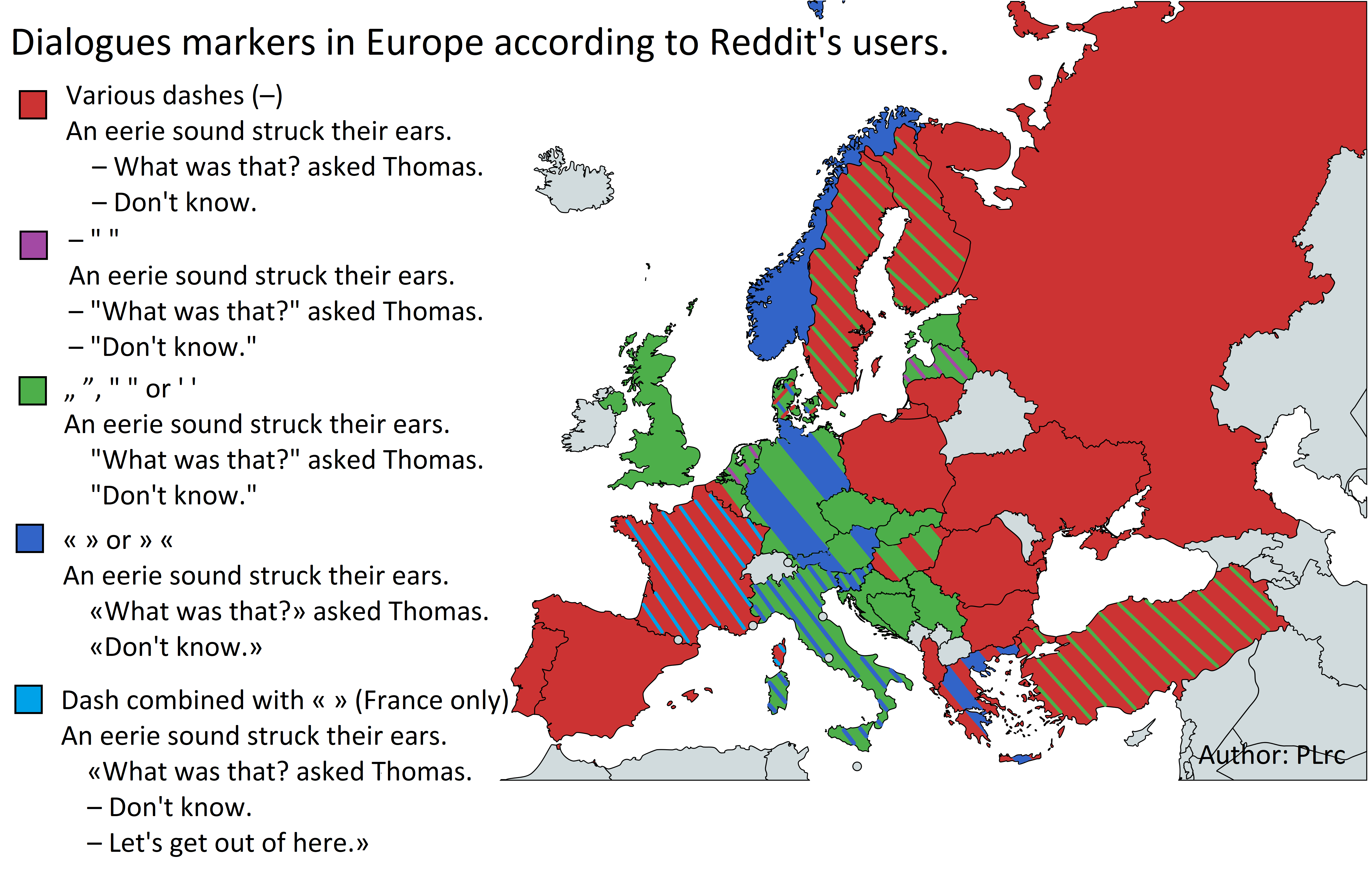 Leute, bei der Kartierung gibt es eine glorreiche Tradition, Weißrussland nicht einzubeziehen, und ich schrecke davor zurück, diese schöne Tradition zu brechen, aber … wie werden Dialoge in Büchern auf Weißrussisch markiert? Nur mit Bindestrichen oder anders? Ich habe die aktuelle Version meiner Karte eingefügt.