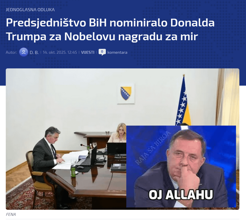 Die Präsidentschaft von Bosnien und Herzegowina nominiert Donald Trump für den Friedensnobelpreis
