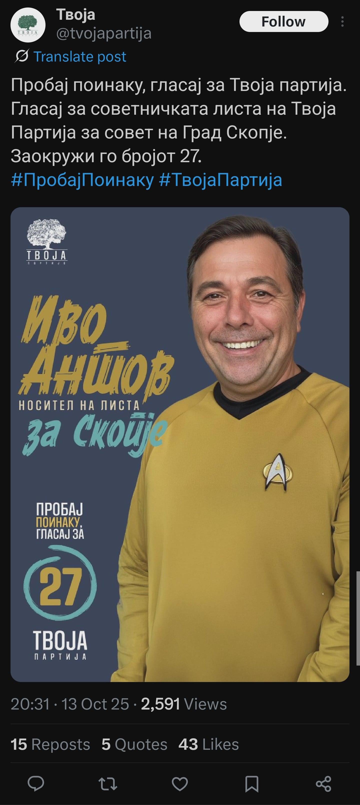 Реклама 10/10, вкус 10000/10. Излагам да гласам за Обединетата Федерација на Планети.