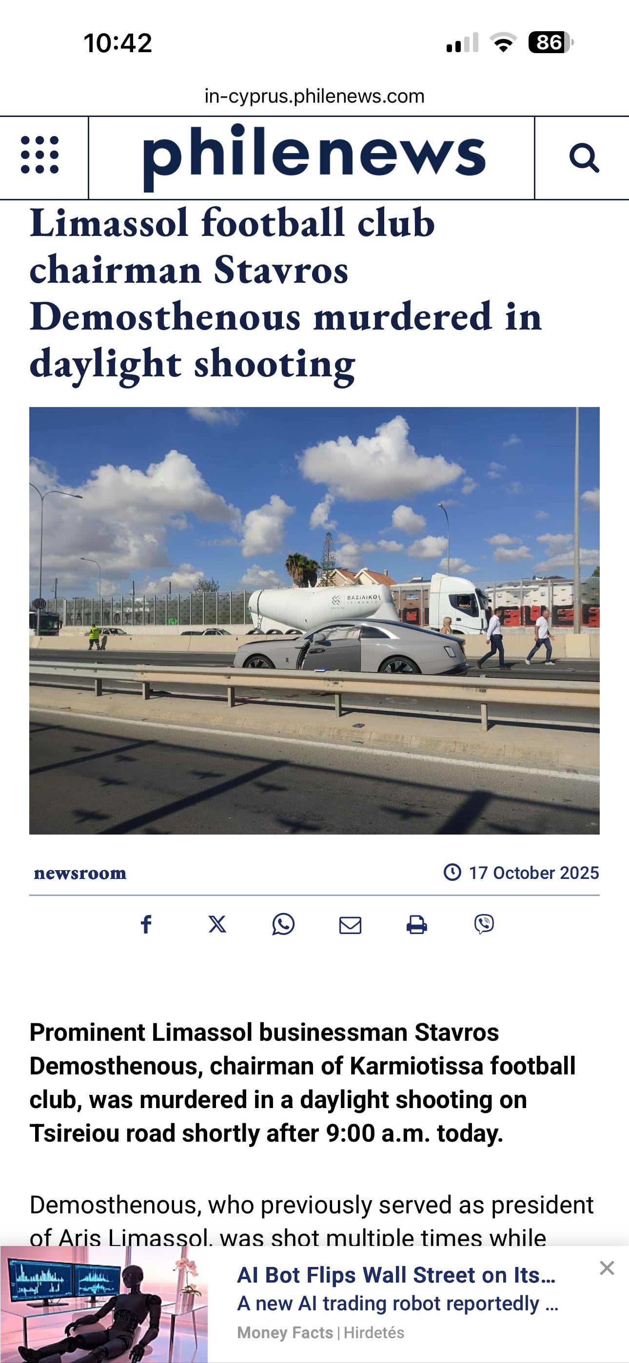 RIP. Just be aware the traffic this caused was insane. Got stuck in it. From Germasoyeia roundabout. Can’t believe how bad it was.