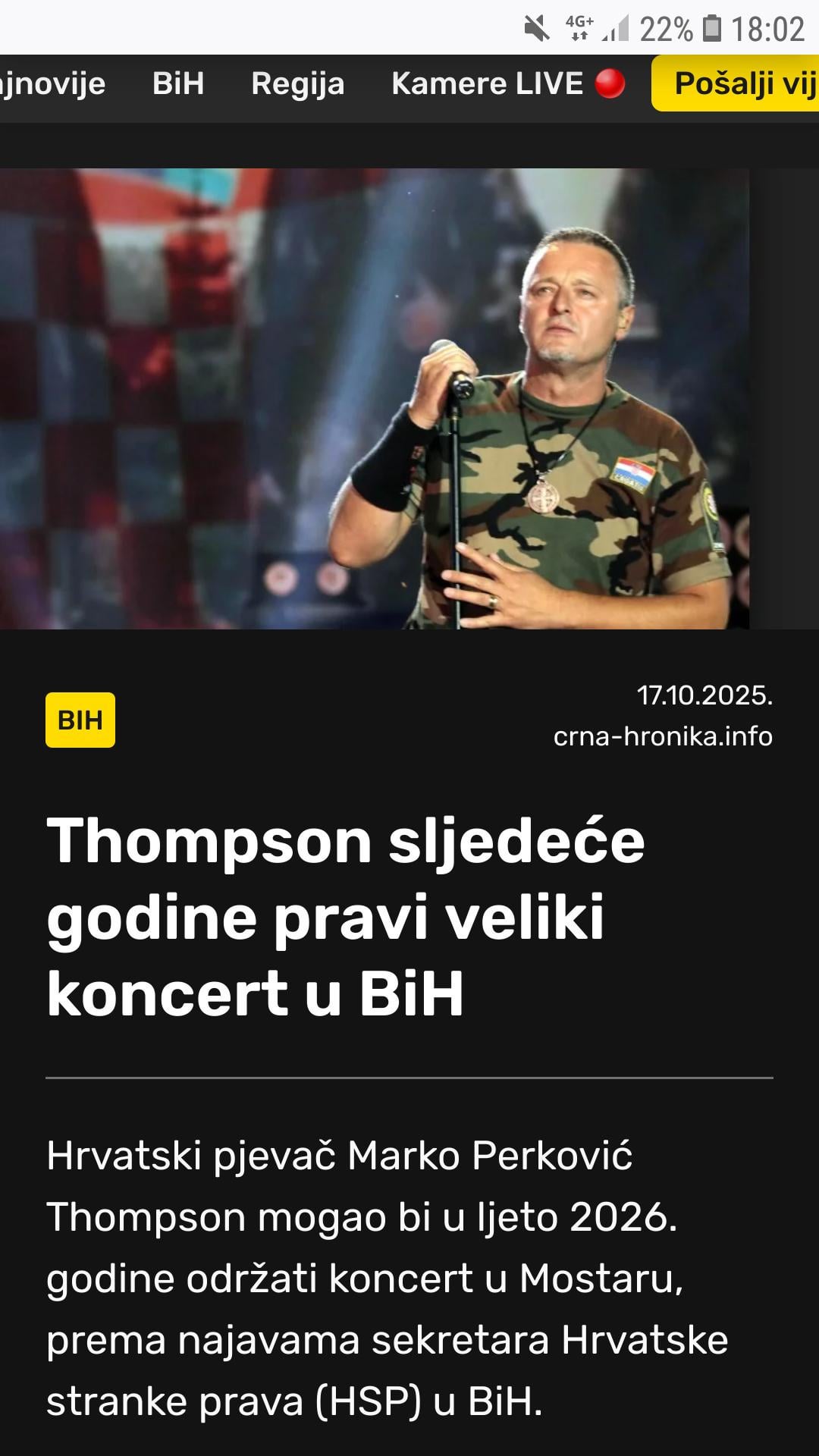 Tko god misli da Thompson ima nesto protiv bosnjaka i Bih i da pjeva nesto protiv BiH i da je ikada ista u negativnom kontekstu spomenuo Bih, ja ga castim ulaznicama i cijelu vecer placam pice na koncertu.