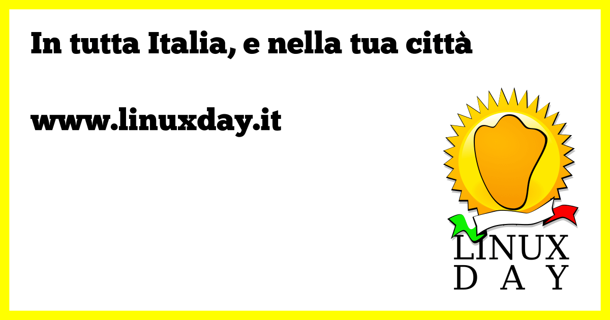 L’evento dedicato all’open source, linux, open data ecc è di nuovo nella città più vicina a voi 🙂