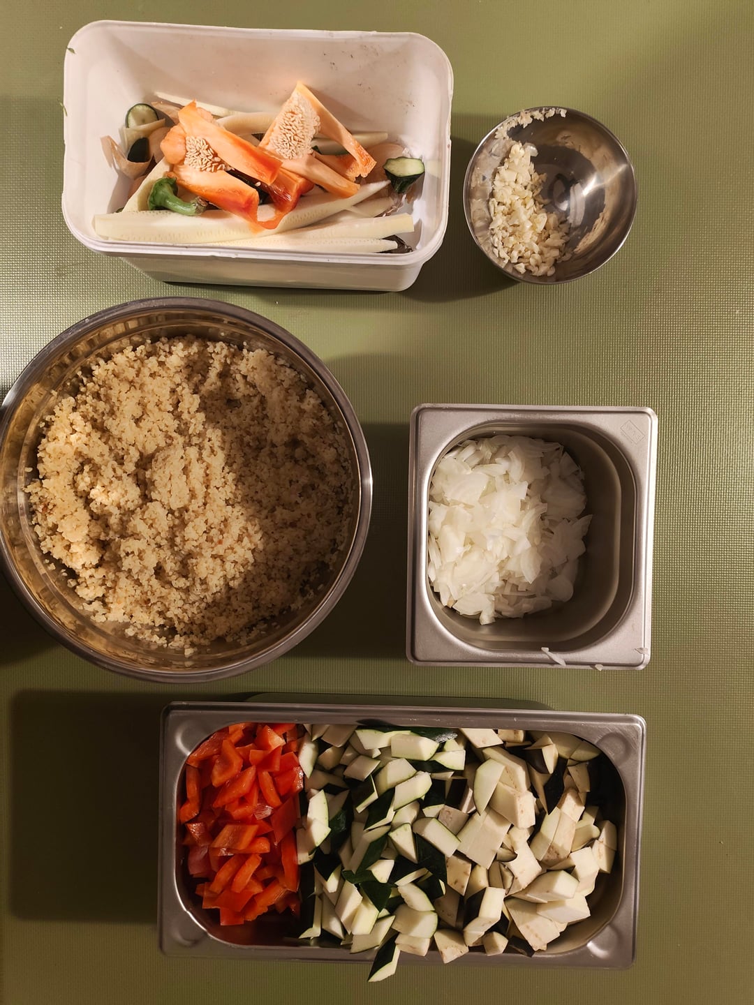 – Paprika(486 g), Aubergine(639 g) und Zucchini(980 g) grob würfeln
