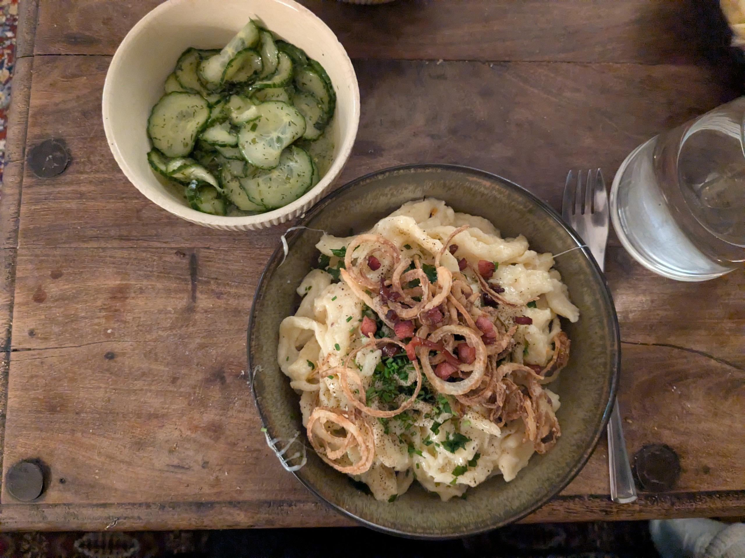 Der frische Gurkensalat scheint mir ein sehr guter Ausgleich zu den deftigen Spätzle zu sein, genau mein Ding, gute Idee! 👌🏼
