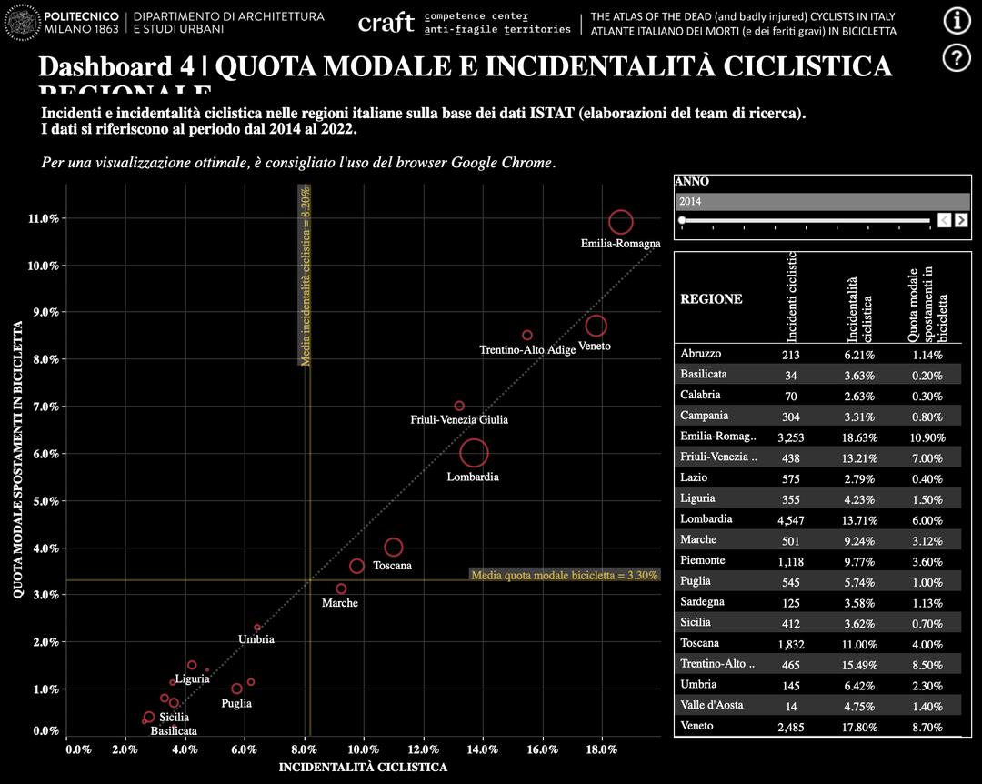 Der italienische Atlas der Todesfälle und schweren Verletzungen auf Fahrrädern zwischen 2014 und 2023. Die detaillierteste Kartierung von Fahrradunfällen, die jemals in Italien durchgeführt wurde (erstellt von der Polytechnischen Universität Mailand)