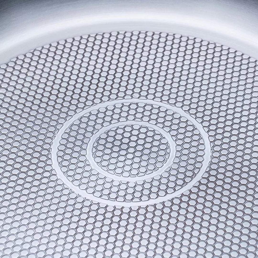 Das Konzept ist, soweit ich verstehe, dass durch die Kerben das Essen weniger direkten Kontakt zur Pfanne hat und dadurch nicht so stark haftet. Ich besitze selbst keine, aber einige Freunde hatten einmal welche, weil sie entweder diesem Trend verfallen sind oder sie einfach zufällig gekauft haben. Keiner war besonders begeistert, egal ob es eine Edelstahlpfanne oder eine Antihaft-Wabenpfanne war. Mein Fazit ist daher: An sich nicht schlecht, bringt aber auch wenig.