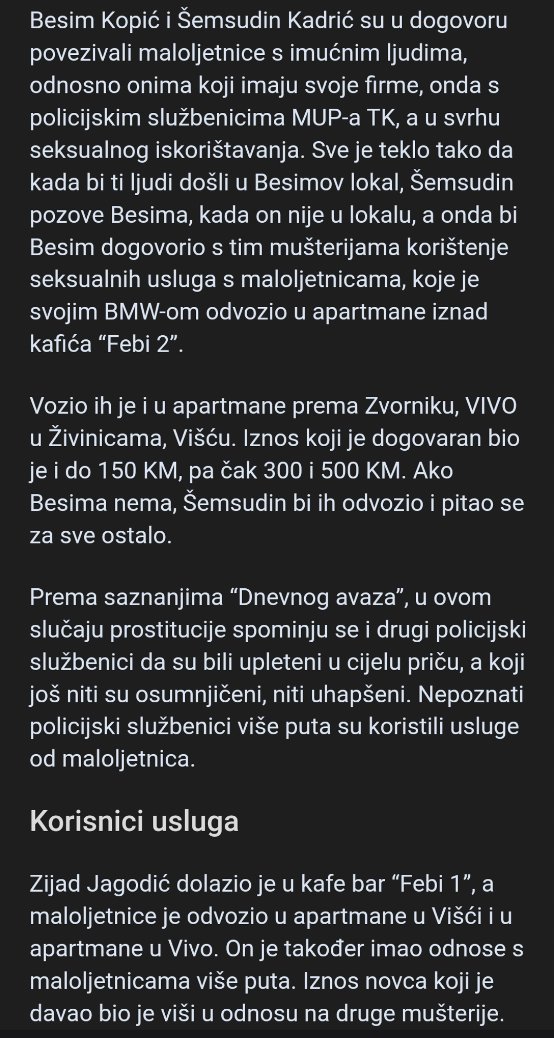 Zašto ne bi bilo moguće? Slične stvari su se dešavale u pravim državama gdje zakon i vladavina prava još funkcioniraju (prostitucijski lanci maloljetnica u Velikoj Britaniji, pedofilske mreže u Španjolskoj, onaj slučaj gdje je žena bila godinama kontinuirano silovana u Francuskoj), a da ne bi u jednoj balkanskoj vukojebini.