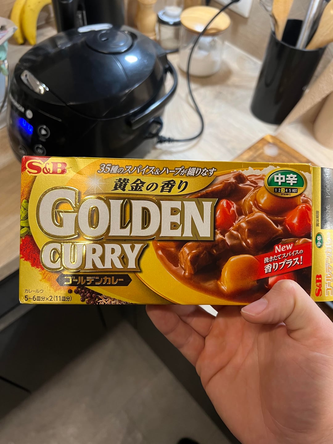 – Eine ganze Packung Golden Curry Currywürfel dazugeben (einzeln, am besten in einer Suppenkelle nacheinander einrühren)