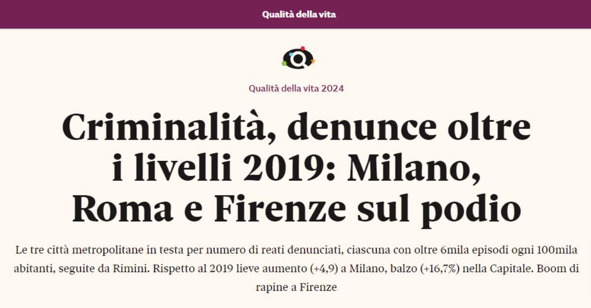 Mi aspetto anche il commento simpatico di chi pensa che aumentino i crimini perché la gente denuncia di più.
