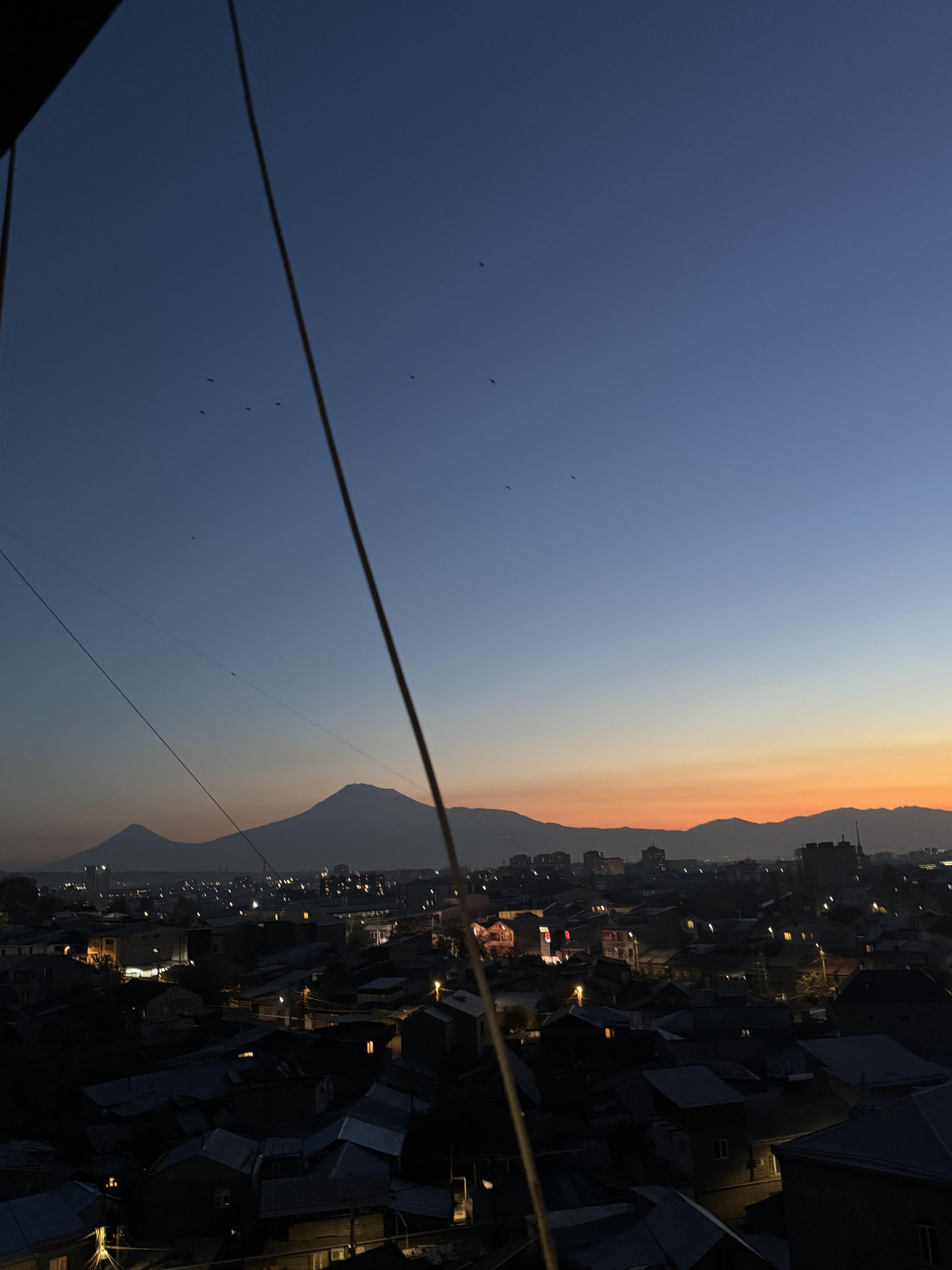 Blick auf den Berg Ararat direkt von meinen Apartments in Eriwan bei Sonnenuntergang