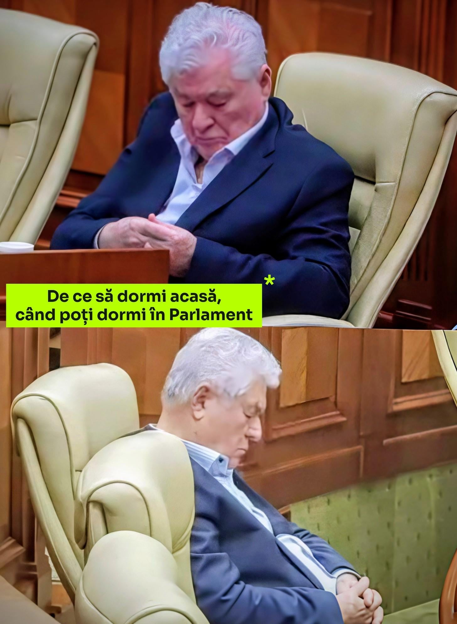 Nui nimic, babele și moșnegii care îl votează tot dorm în timpul dezbaterilor parlamentare, nu îl vor vedea cum doarme😁
