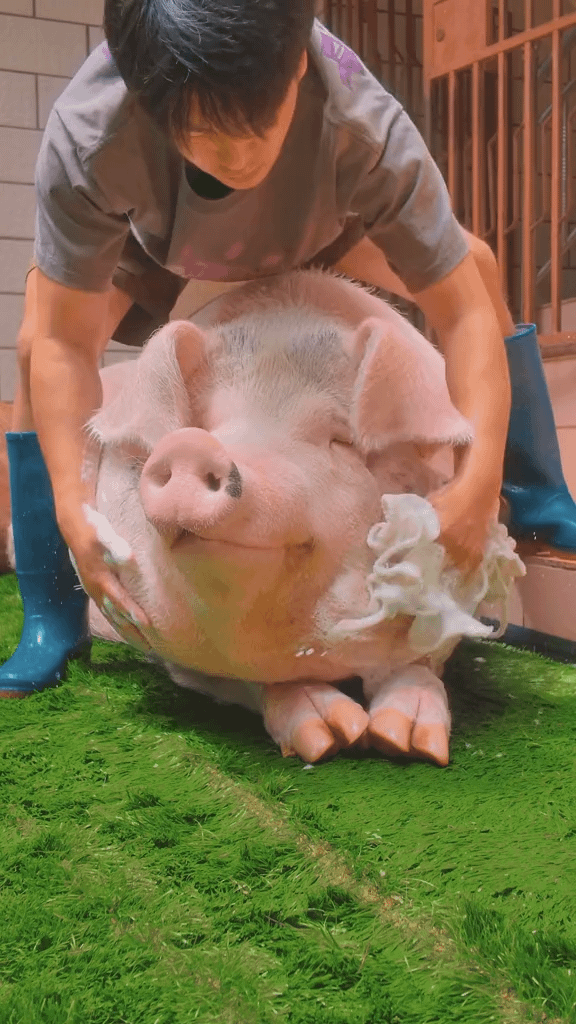Dieses völlig überzüchtete, adipöse Tier wird da mit Shampoo eingerieben… Why?