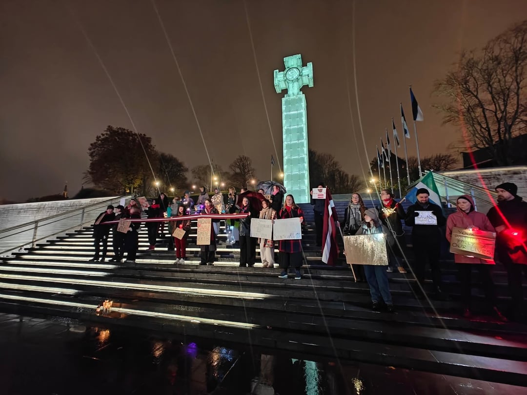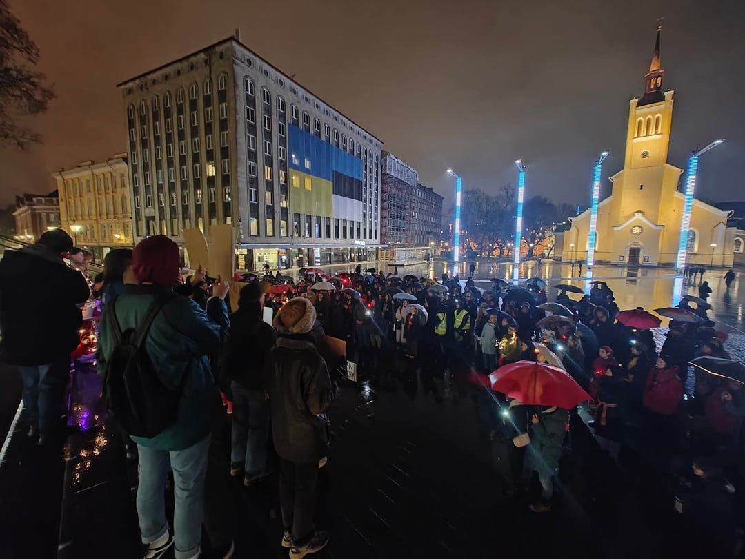 Menschen versammelten sich vor den Stufen des Vabaduse Väljak (Platz der Freiheit), bevor sie sich auf den Weg zur etwa einen Kilometer entfernten lettischen Botschaft machten. Eigentlich sollte die Veranstaltung nur vor der lettischen Botschaft stattfinden, aber da die Veranstaltung online so viel Anklang fand, wurde die erste Hälfte verschoben, um mehr Platz zu schaffen. Aufgrund des Platzmangels standen am Ende der Menschenmenge vor der Botschaft immer noch mehr Menschen auf der anderen Straßenseite.
