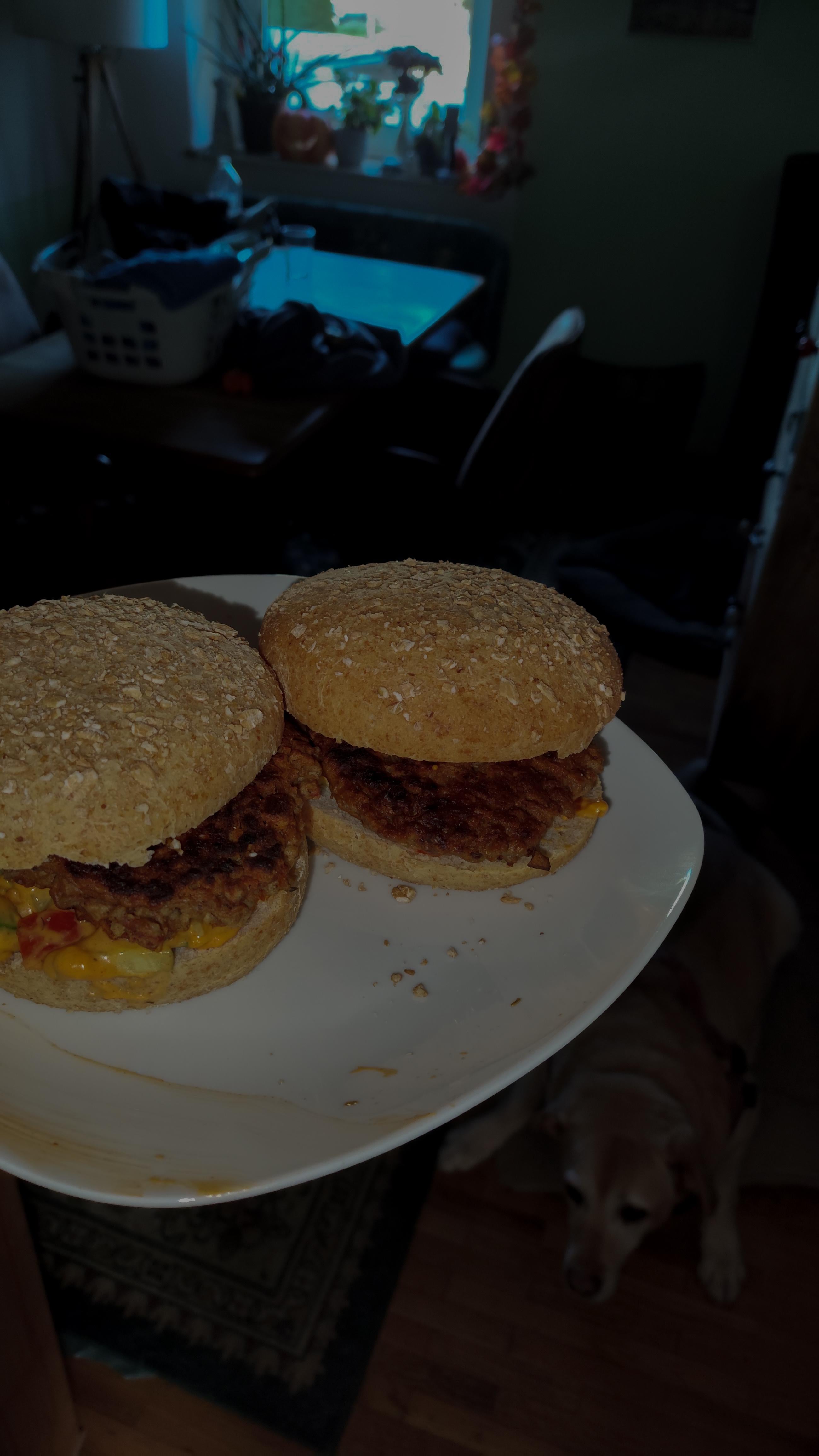 Hab heute das erste Mal so richtig geile vegane Burger selber hinbekommen. Brötchen sind glaube von Edeka Eigenmarke, Pattys aus dem sunflower Mix der sunflower Family. Radikal anstrengenden Tag gehabt und jz einfach wunschlos Happy mit diesen wunderschönen Kollegen 🤩