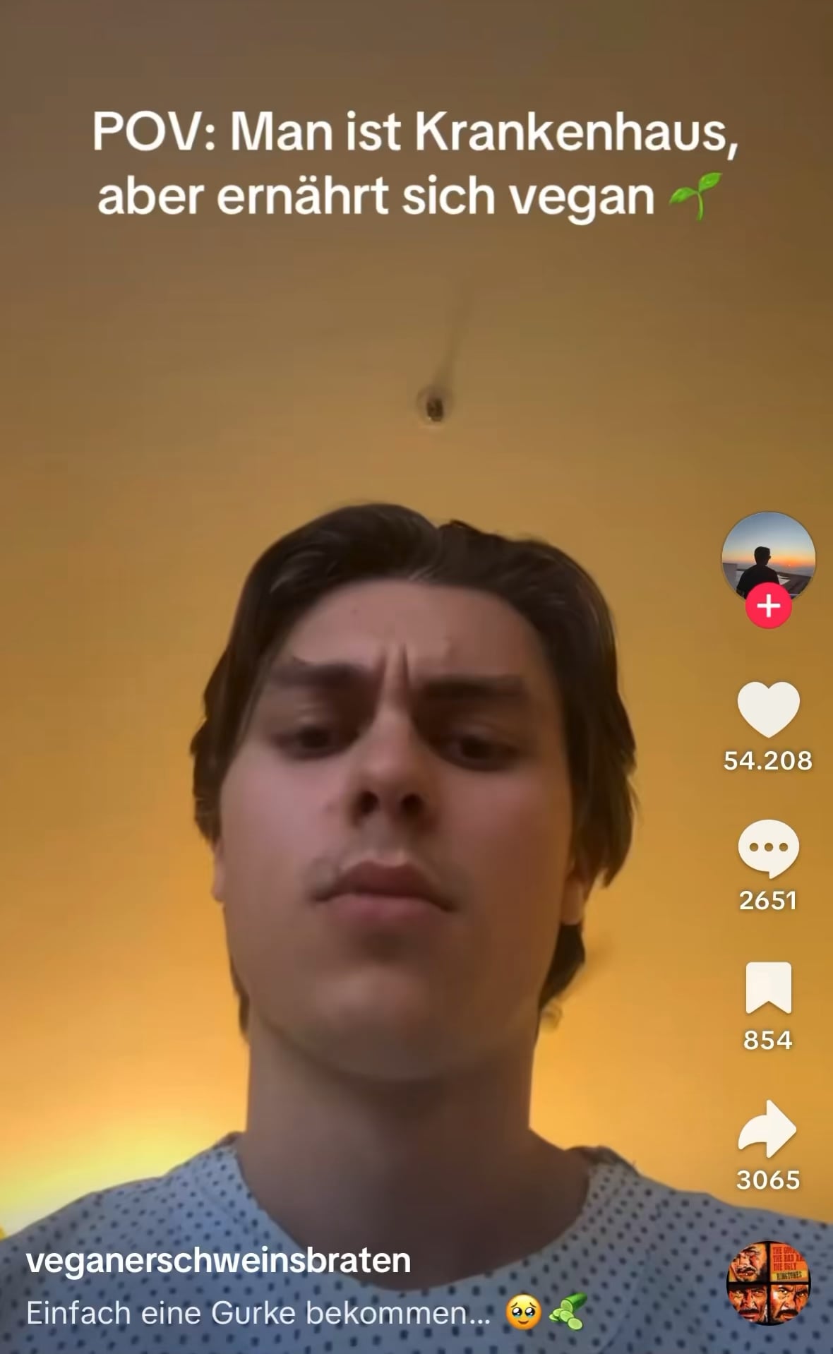 Brot und Margarine gibts in jedem Krankenhaus und sind vegan? Wär jetzt auch kein Festmahl, aber irgendwie checke ich das Video nicht